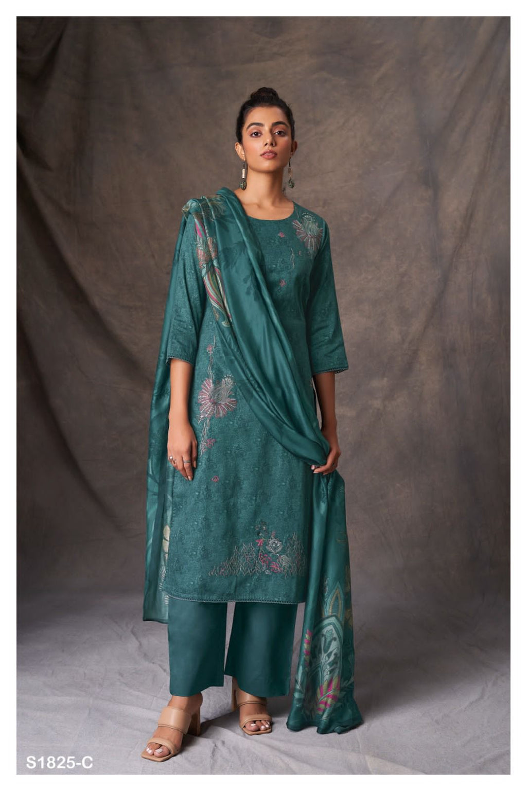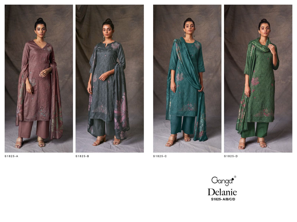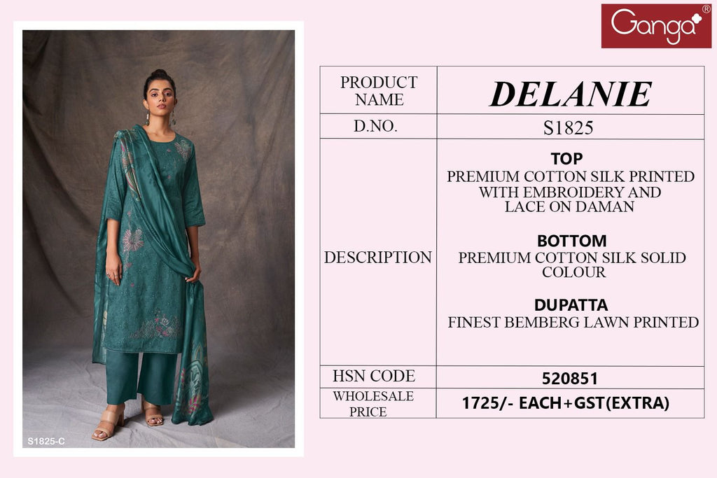 Ganga Delanie 1825 Silk Cotton Printed With Embroidery Designer Fancy Salwar Suits