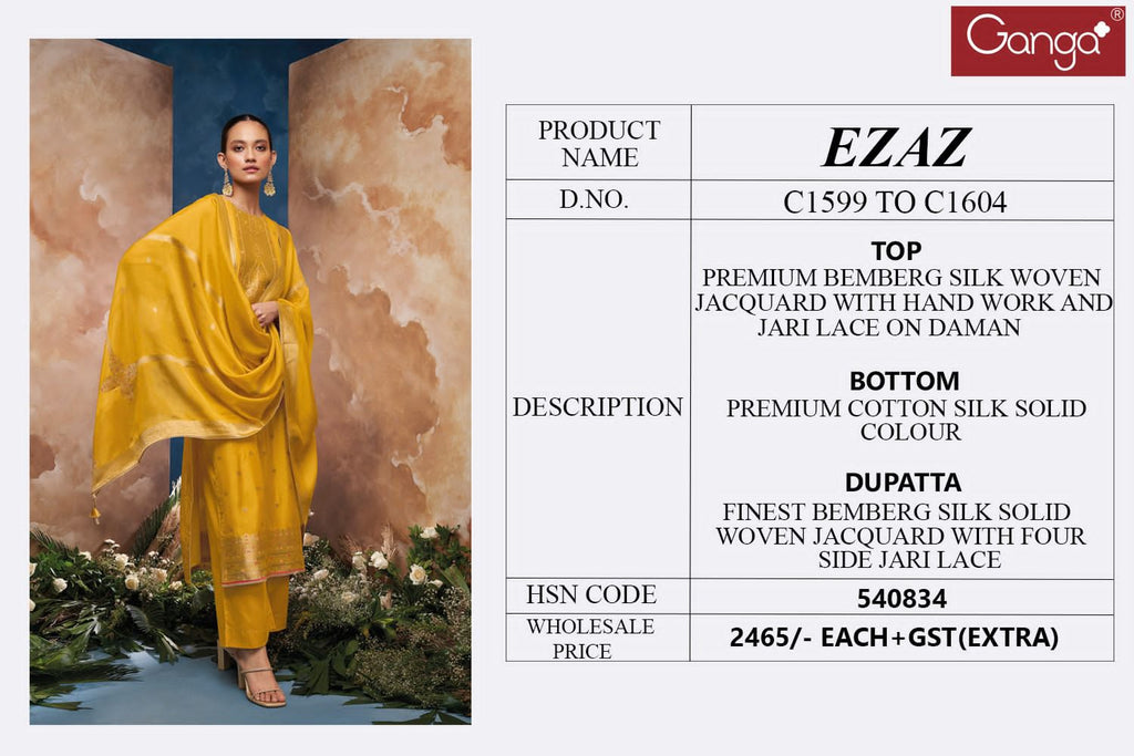 TOP: PREMIUM BEMBERG SILK WOVEN JACQUARD WITH HANDWORK AND JARI LACE ON DAMAN BOTTOM: PREMIUM COTTON SILK SOLID COLOUR DUPATTA: FINEST BEMBERG SILK SOLID WOVEN JACQUARD WITH FOUR SIDE JARI LACE |