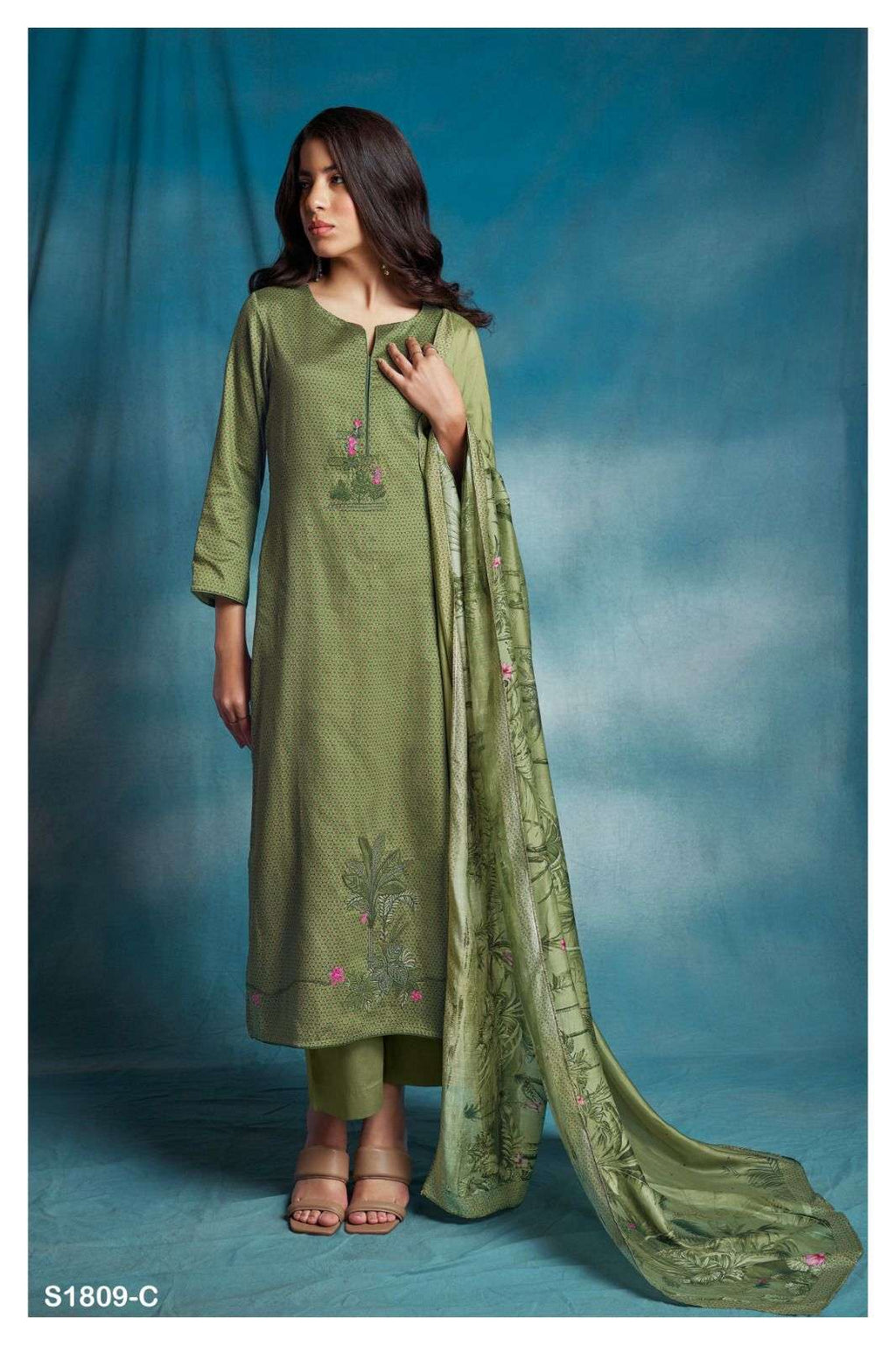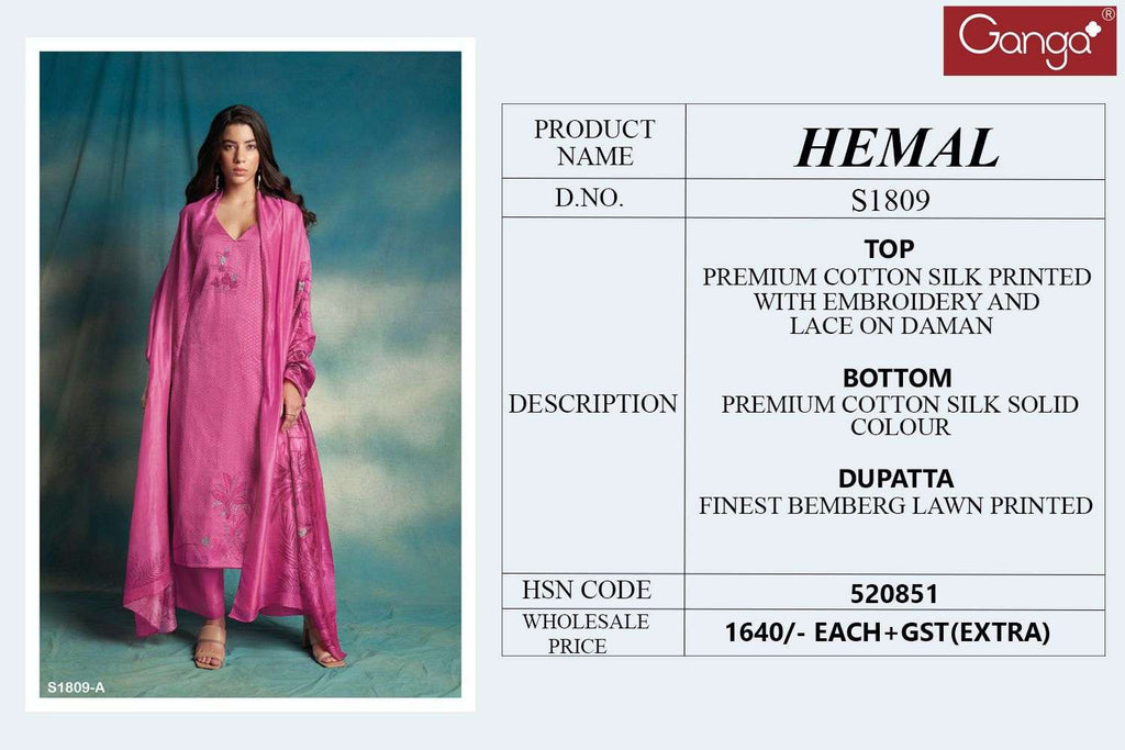 Ganga Hemal 1809 Fancy Printed With Work Cotton Silk Ladies Suits Material