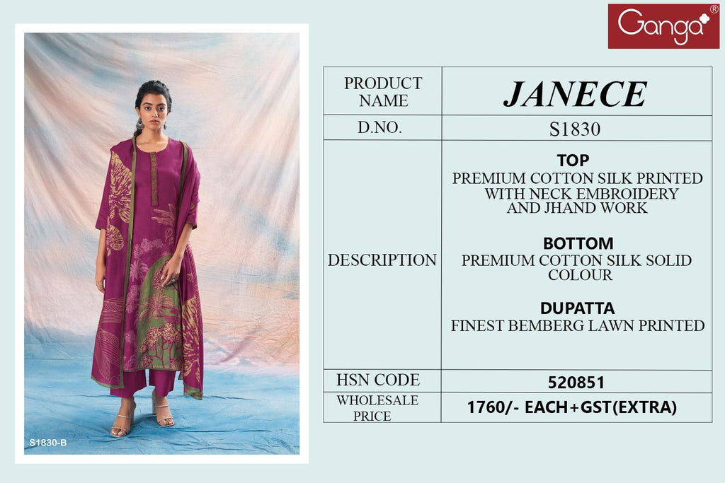 Other Details | Top:-premium Cotton Silk Printed With Neck Embroidery And Handwork Bottom:-premium Cotton Silk Solid Colour Dupatta:-finest Bemberg Lawn Printed |