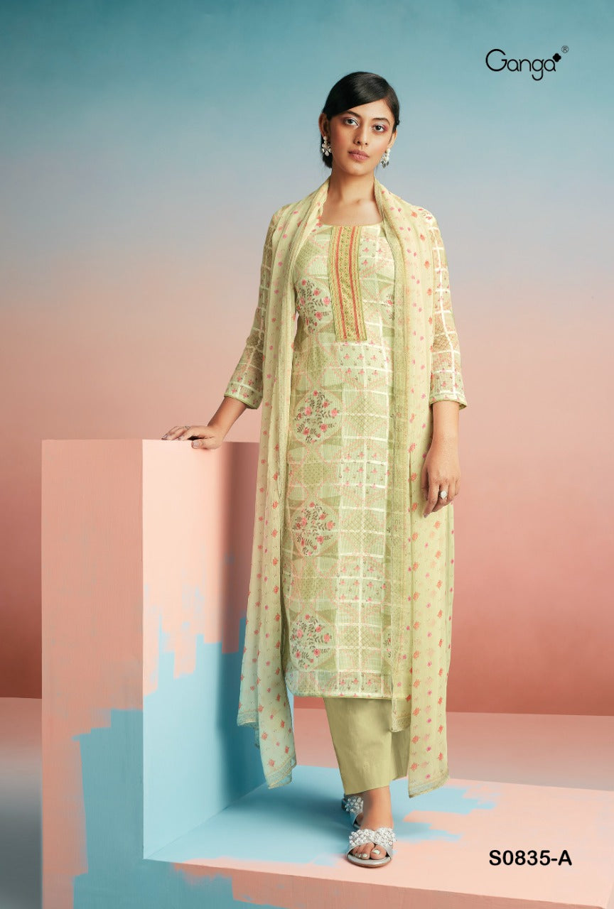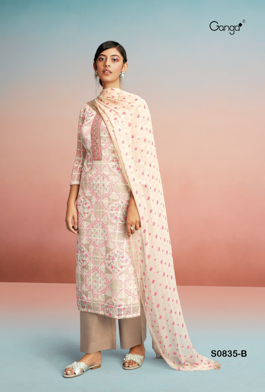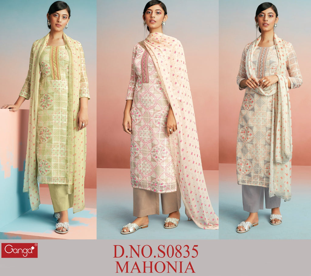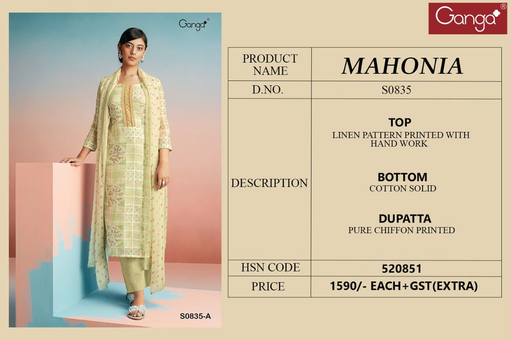 Ganga Mahonia Linen Cotton Printed With Hand Work Festive Wear Salwar Suits