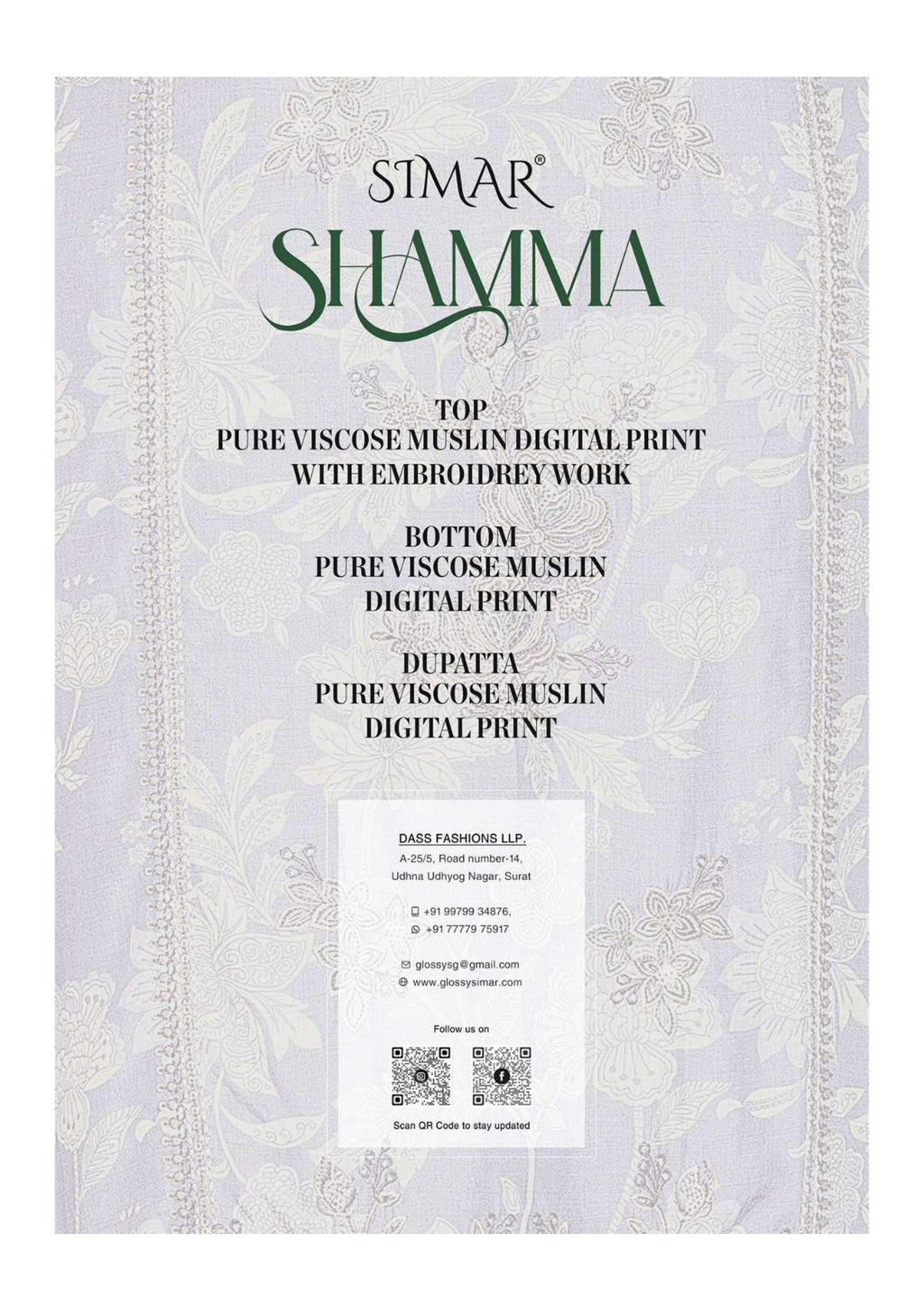 Top: pure viscose muslin digital print with embroidery work Bottom: pure viscose muslin digital print Dupatta: pure viscose muslin digital print |