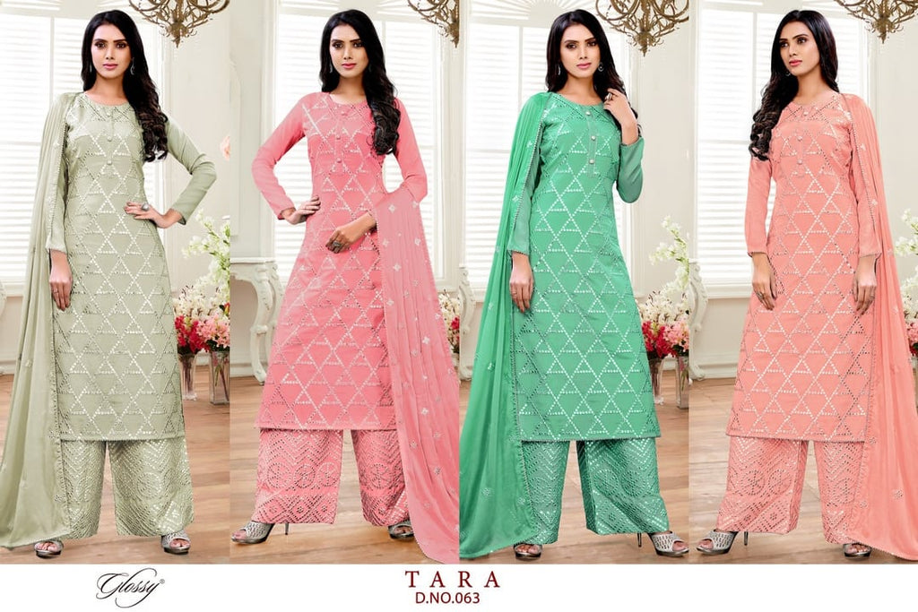 Glossy Tara Chinon Stylish Designer Wear Salwar Kameez