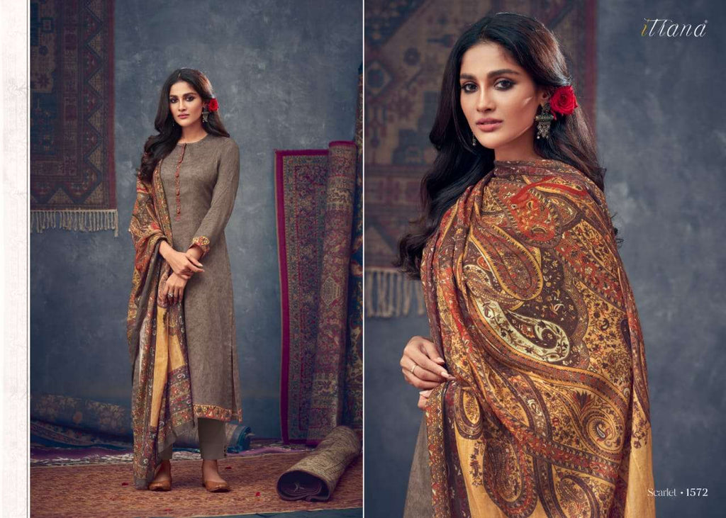 Itrana Scralet Jam Satin Digital Print With Cotton Satin Digital Printed Neck Patti Suit