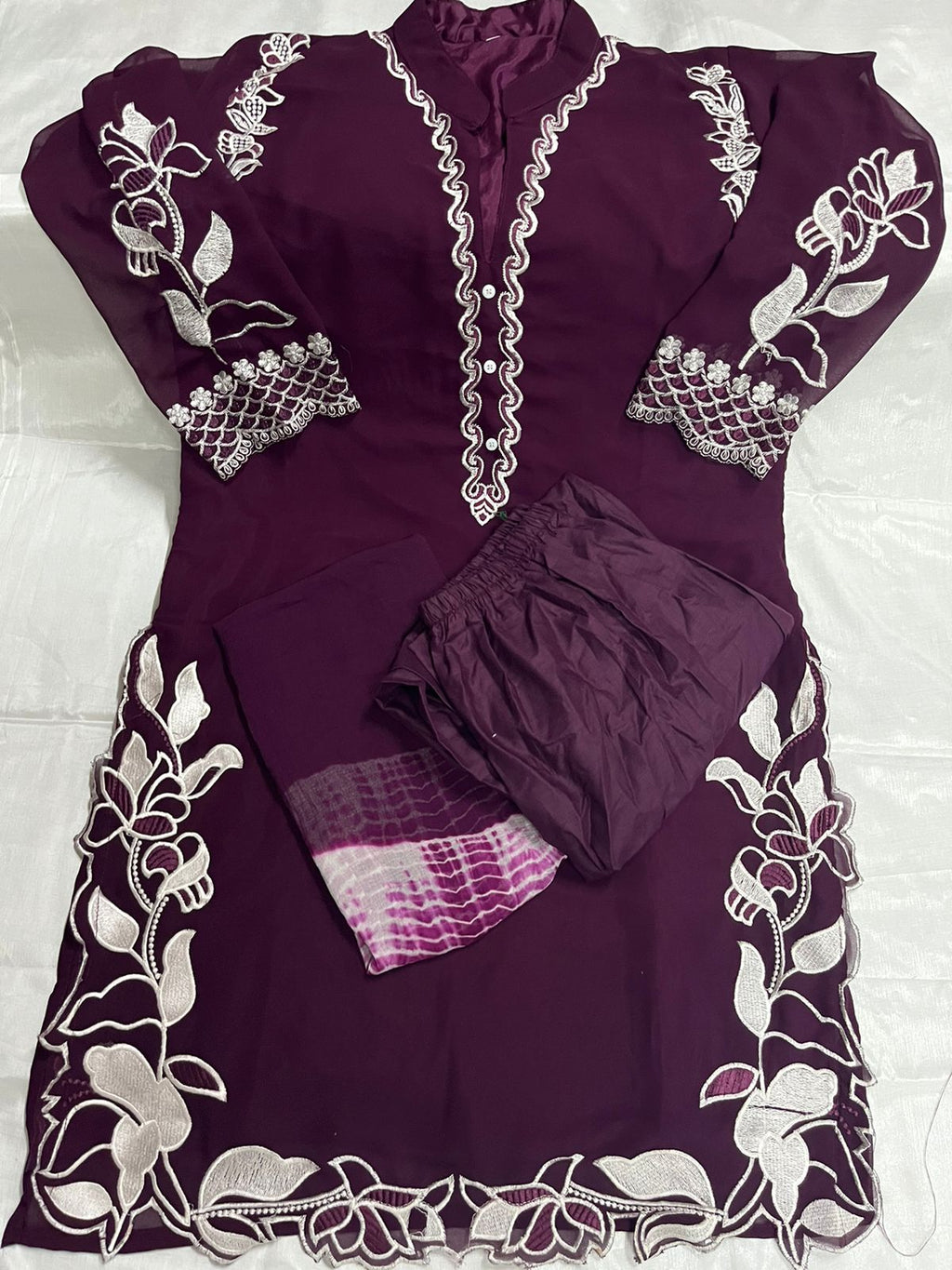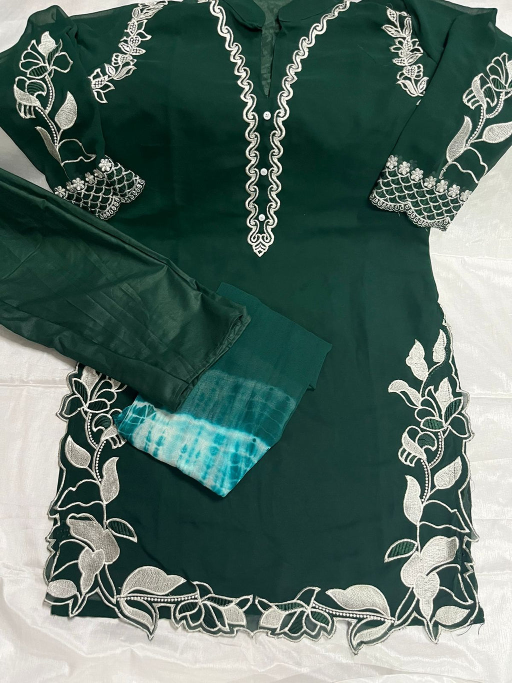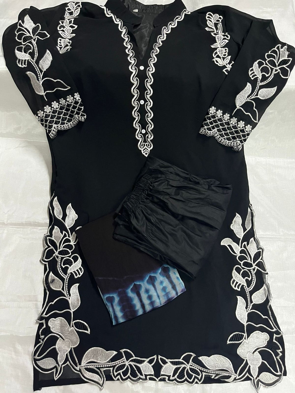 Iznik D No 6001 Fox Georgette Heavy Embroidered Designer Party Wear Kurtis With Bottom & Dupatta