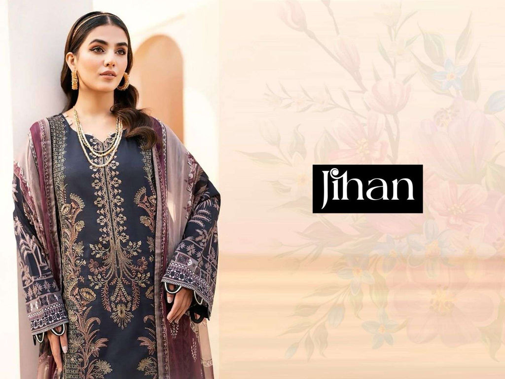 Jihaan Design No 3374 Lawn Cotton Heavy Self Embroidery Salwar Suit