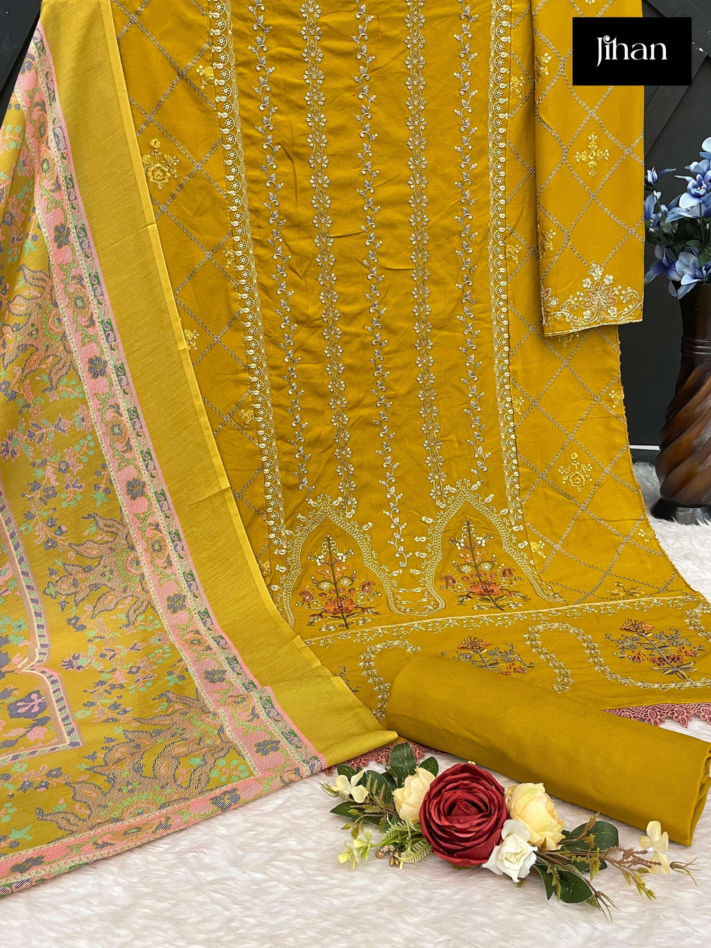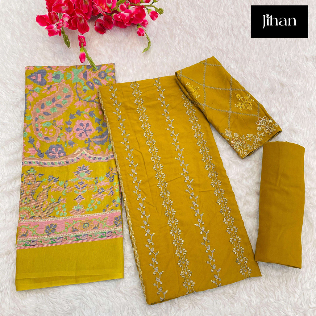 Jihan D No 3449 Cotton Dyed With Heavy Kasmiri Self Embroidery Fancy Salwar Kameez