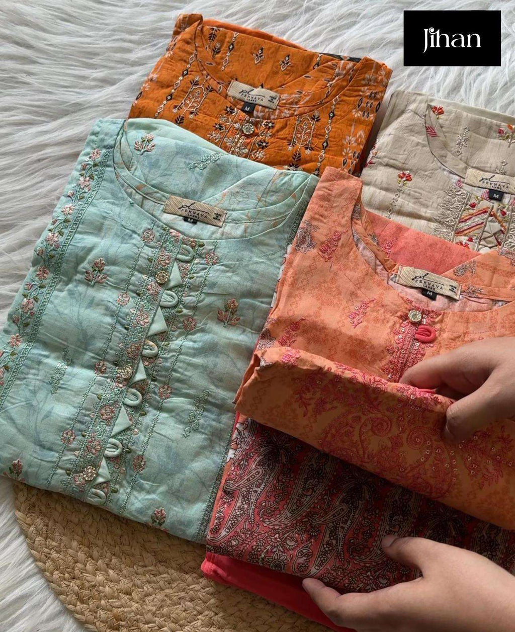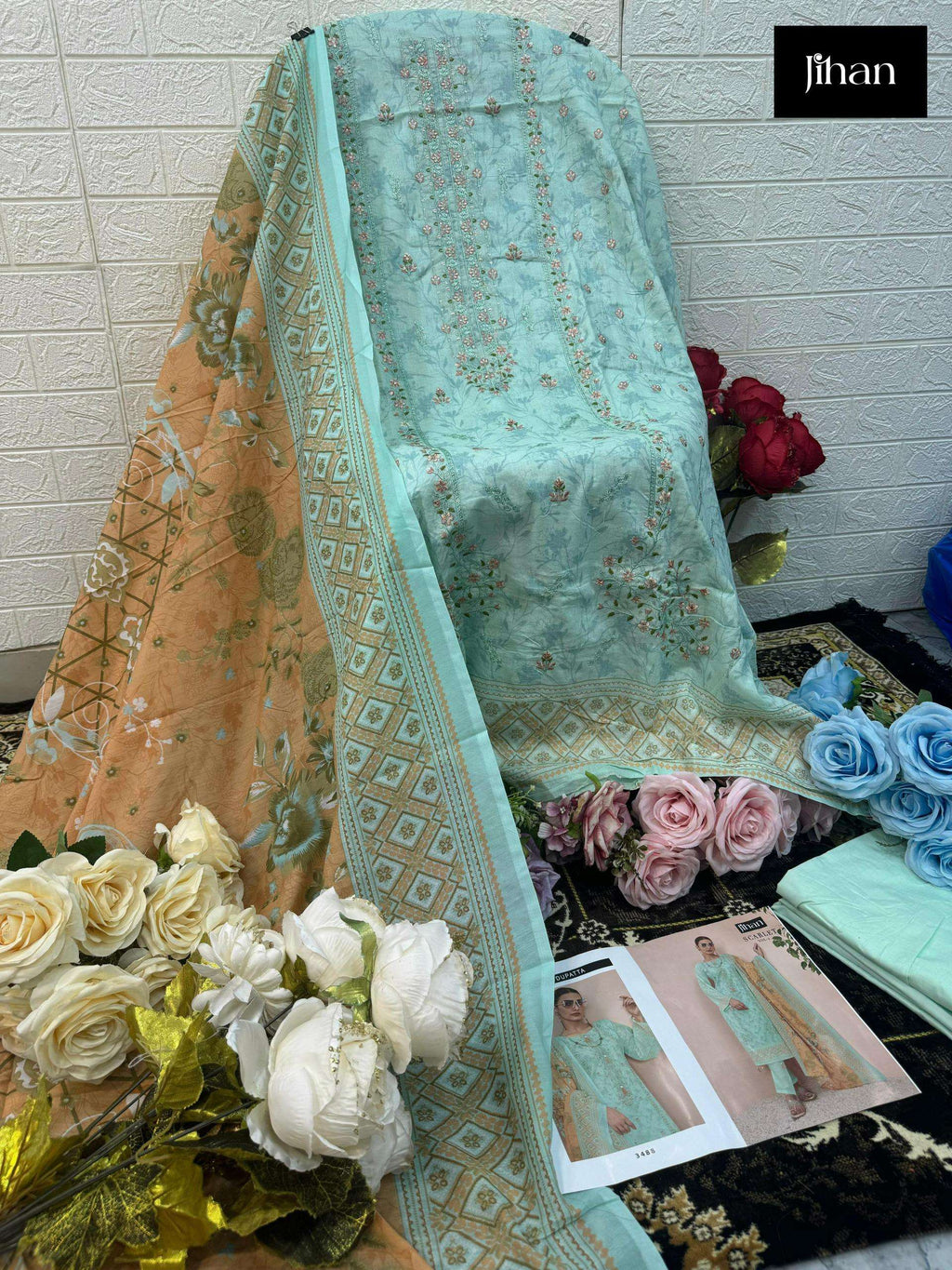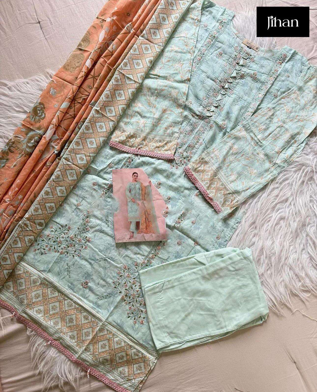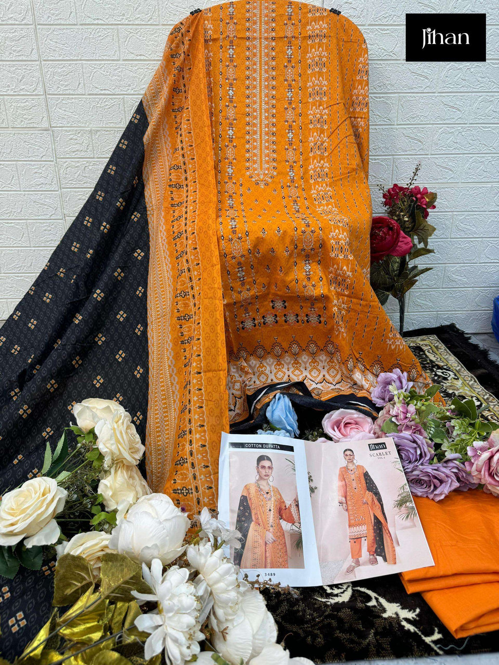 Jihan Scarlet Vol 4 Lawn Cotton Print Exclusive Heavy Self Embrodery Designer Suit