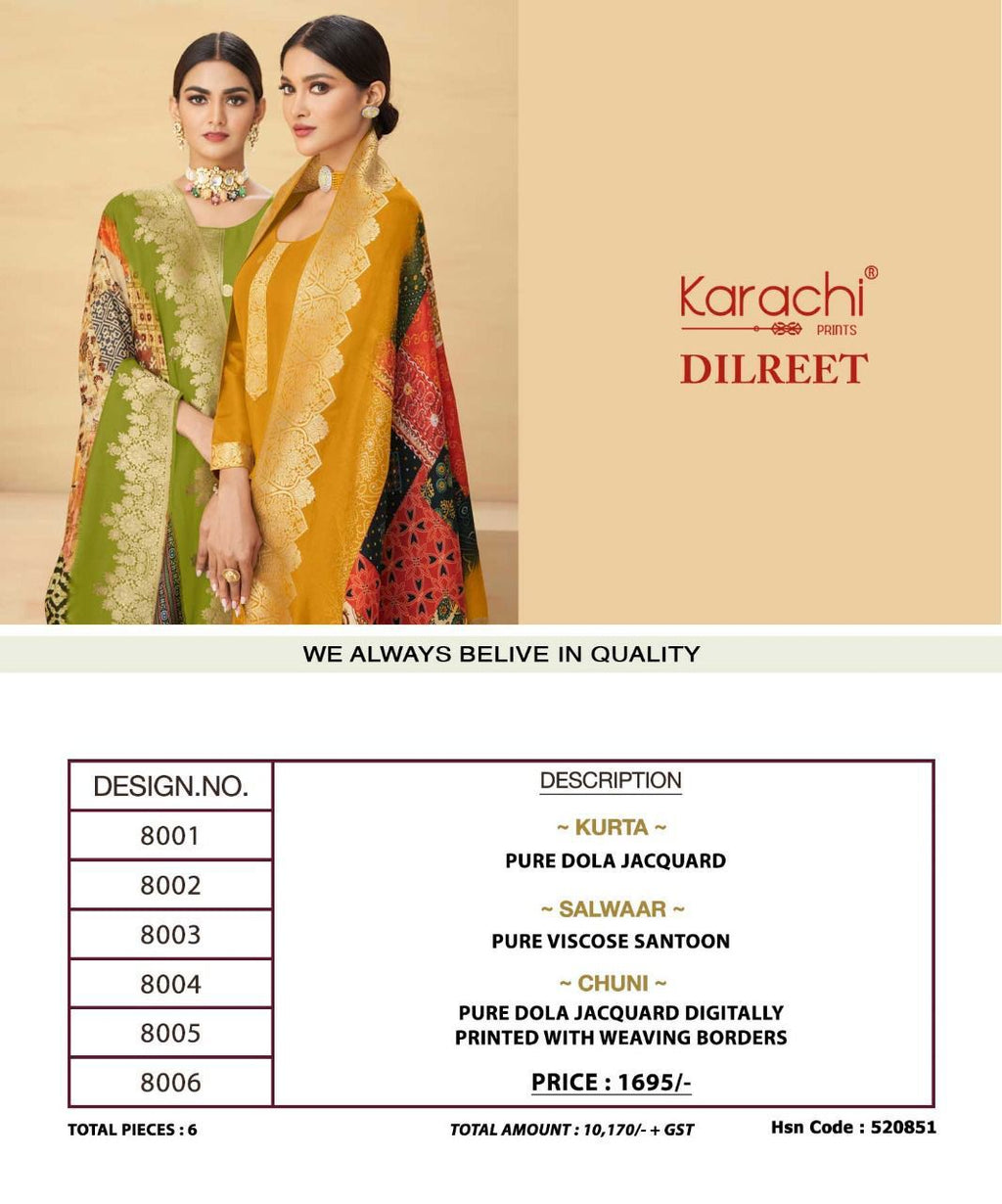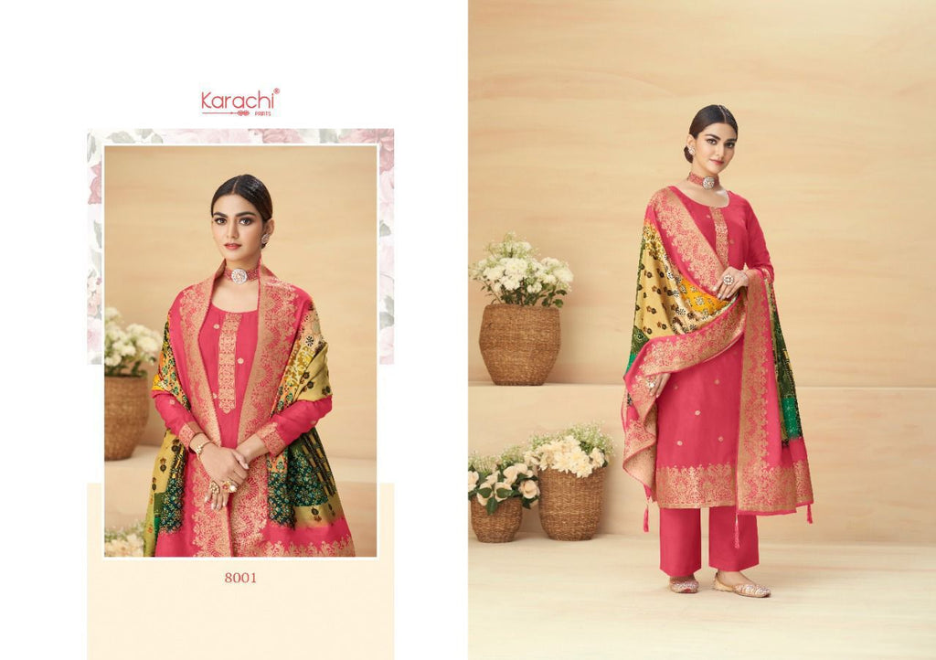 Karachi Dno 8001 To 8006 Jacquard With embroidery Work Stylish Designer Party Wear Salwar Kameez