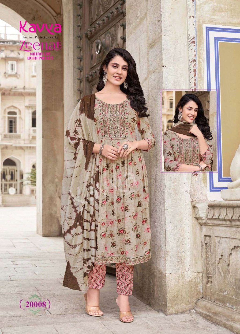 style : nayra cut fabric : capsule foil print top and capsule print bottom with chanderi sequence dupatta top : embrodiery on neck and daman with sides with 45+ inch height bottom : comfort fit premium quality stiched pants with pocket sizes : l xl xxl 3xl rate : 651+gst |