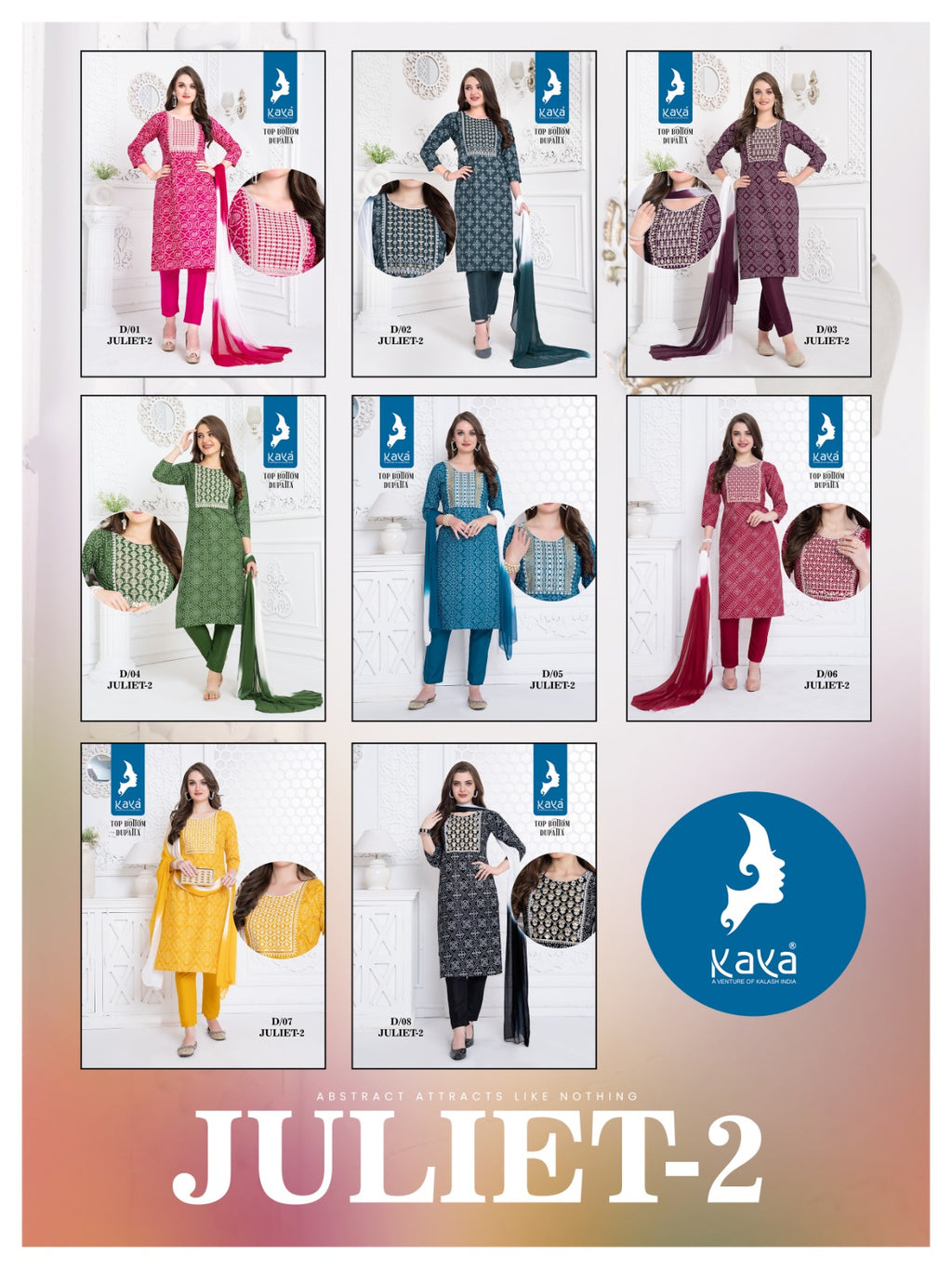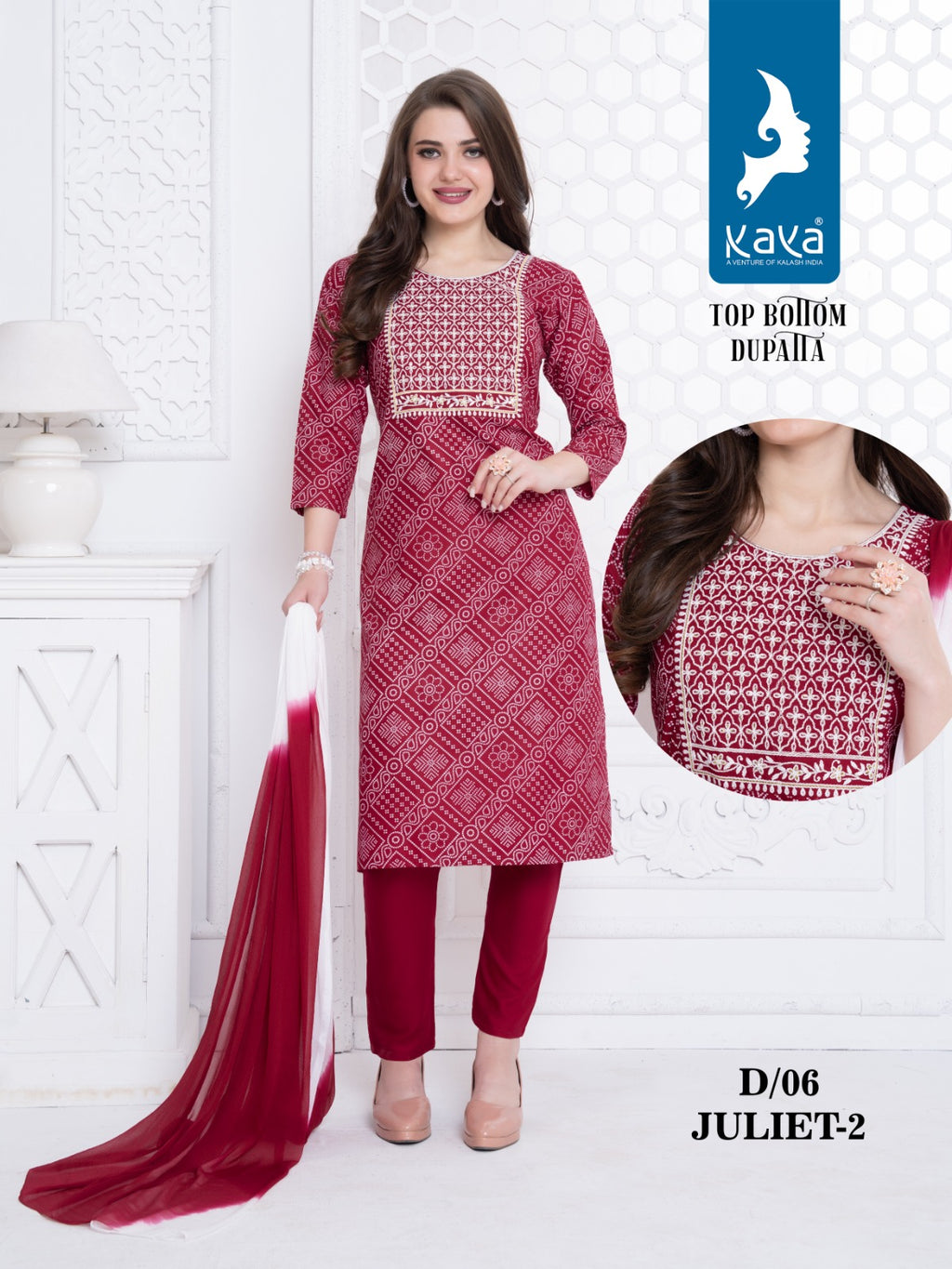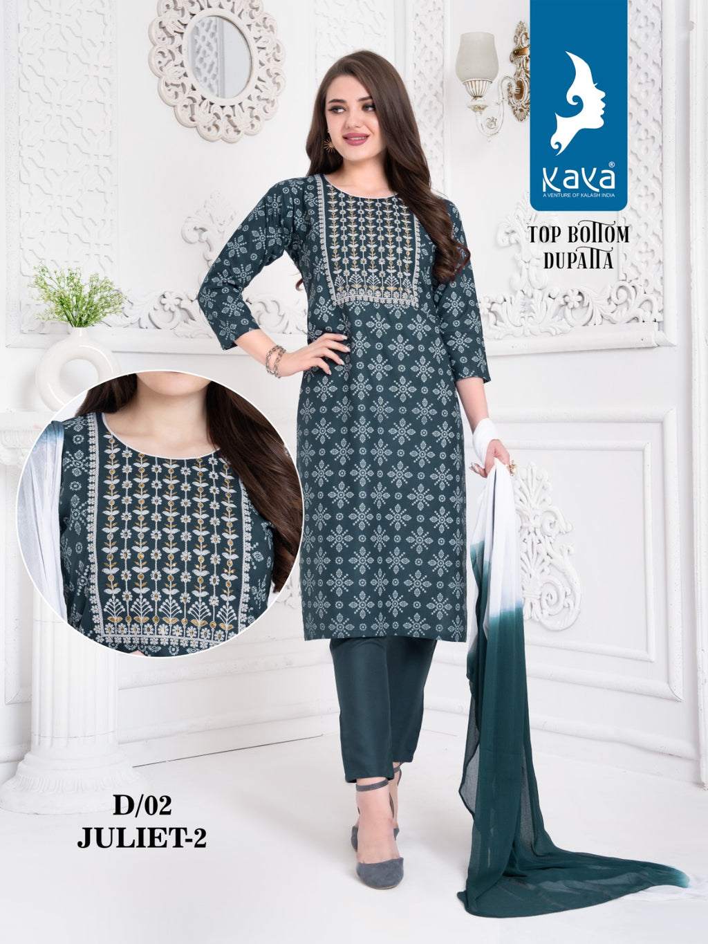 Kaya Juliet Vol 2 Rayon Fancy Straight Kurti And Bottom With Dupatta