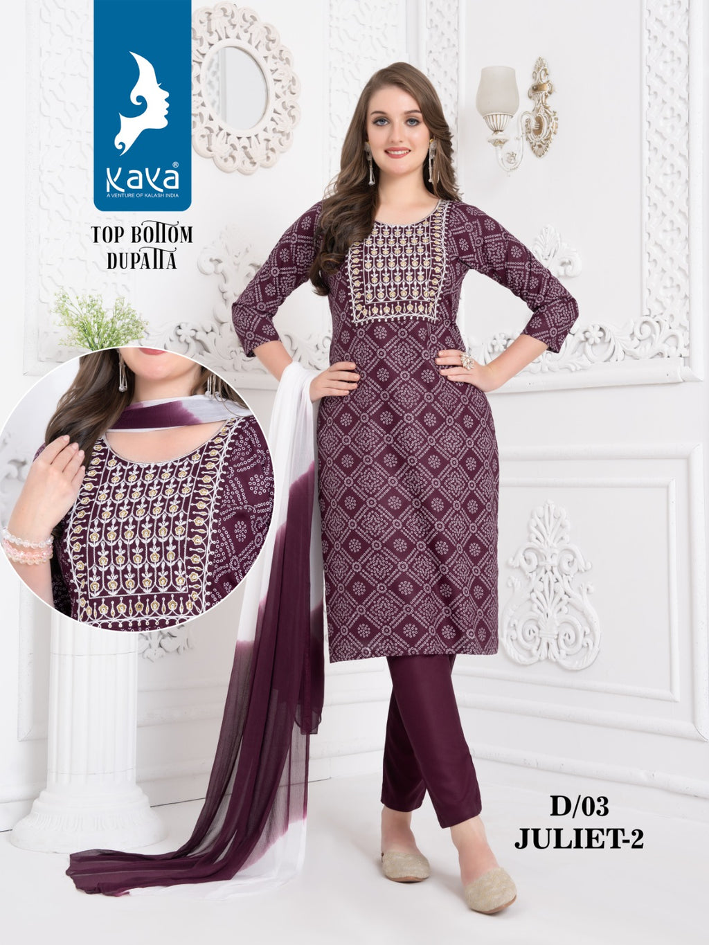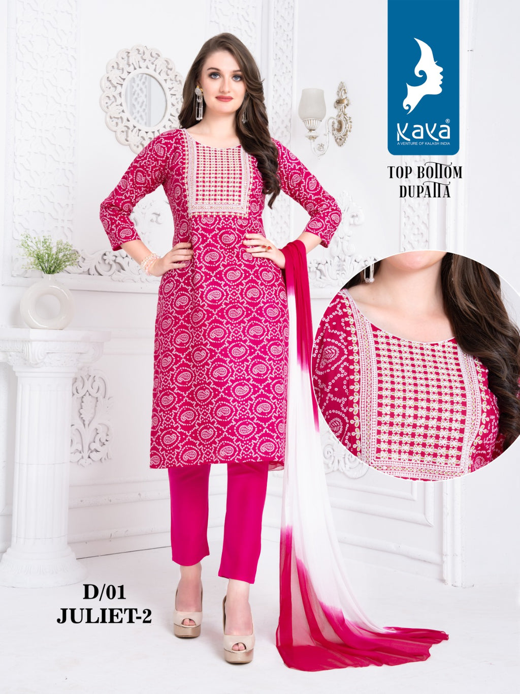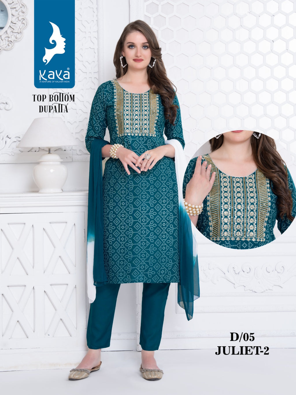 Kaya Juliet Vol 2 Rayon Fancy Straight Kurti And Bottom With Dupatta