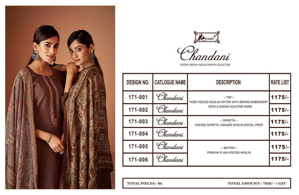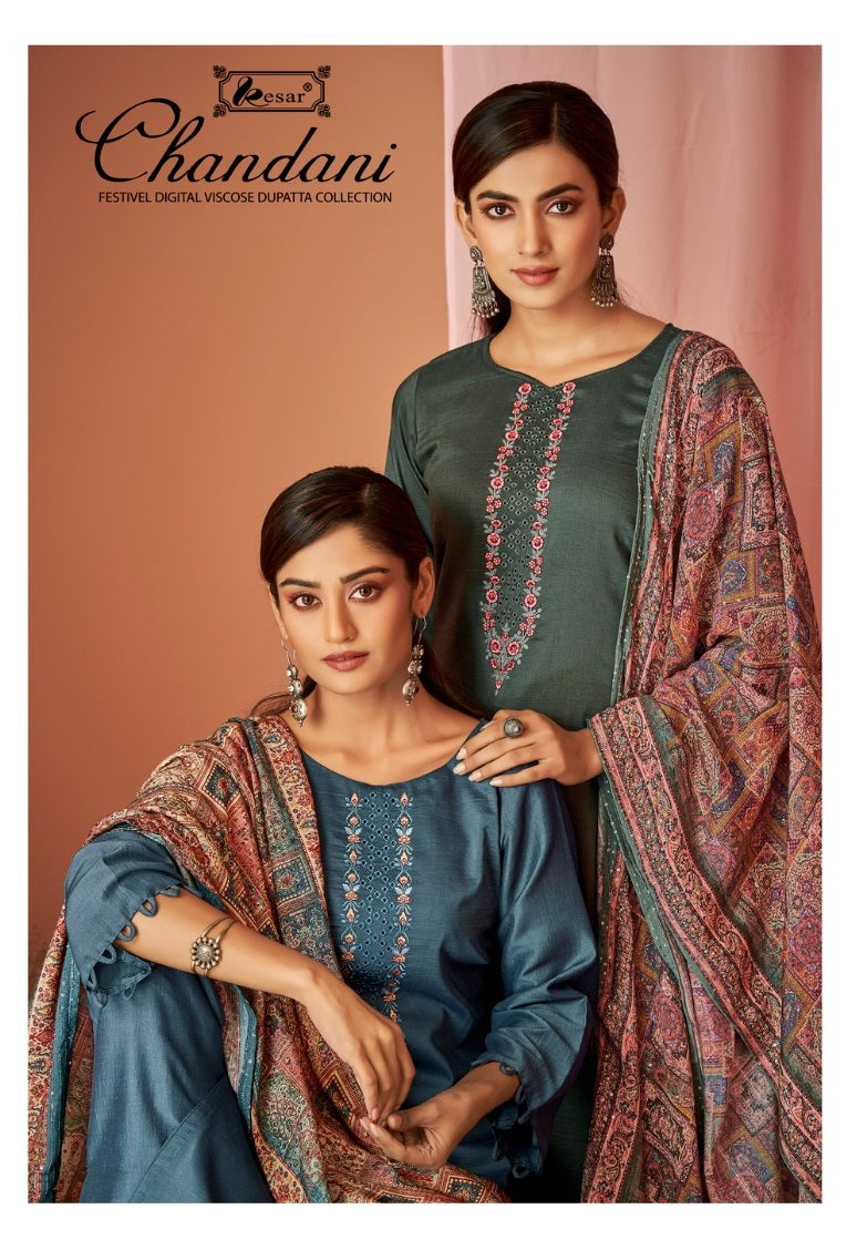 Kesar Chandani Vicose Muslin Cotton Boring Embroidery Neck Daman Scalping Work Fancy Designer Printed Salwar Suit
