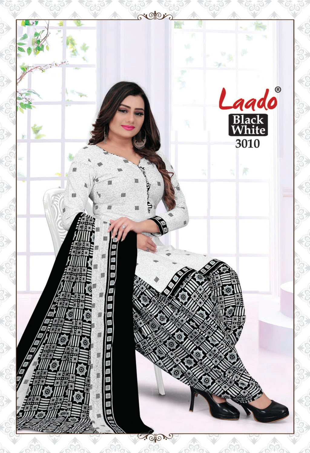 Laado Black & White Special Vol 3 Pure Cotton Patiyala Style Party Wear Salwar Suits
