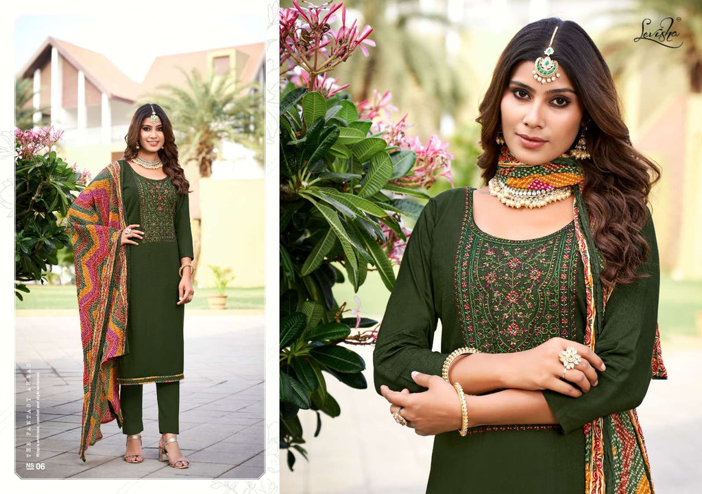 Top- Pure Rayon Slub With Embroidery & Swarovski (2.50 Mtrs) Bottom:- Pure Rayon Viscose Dyed