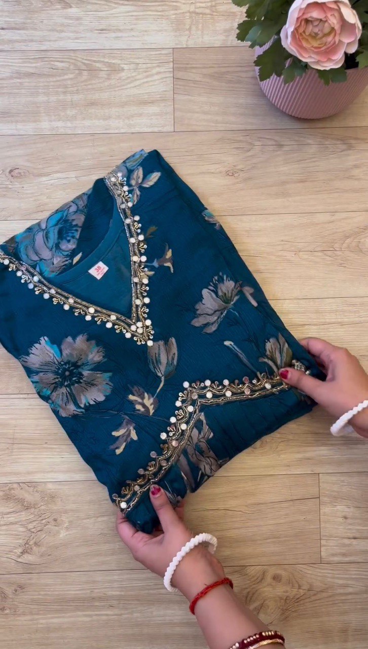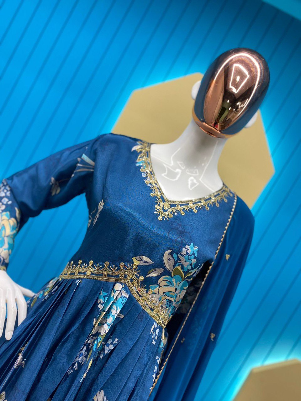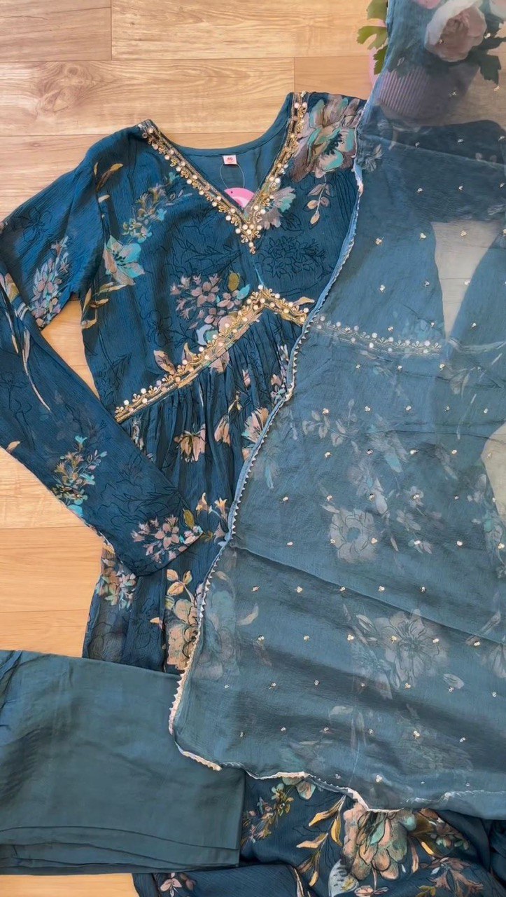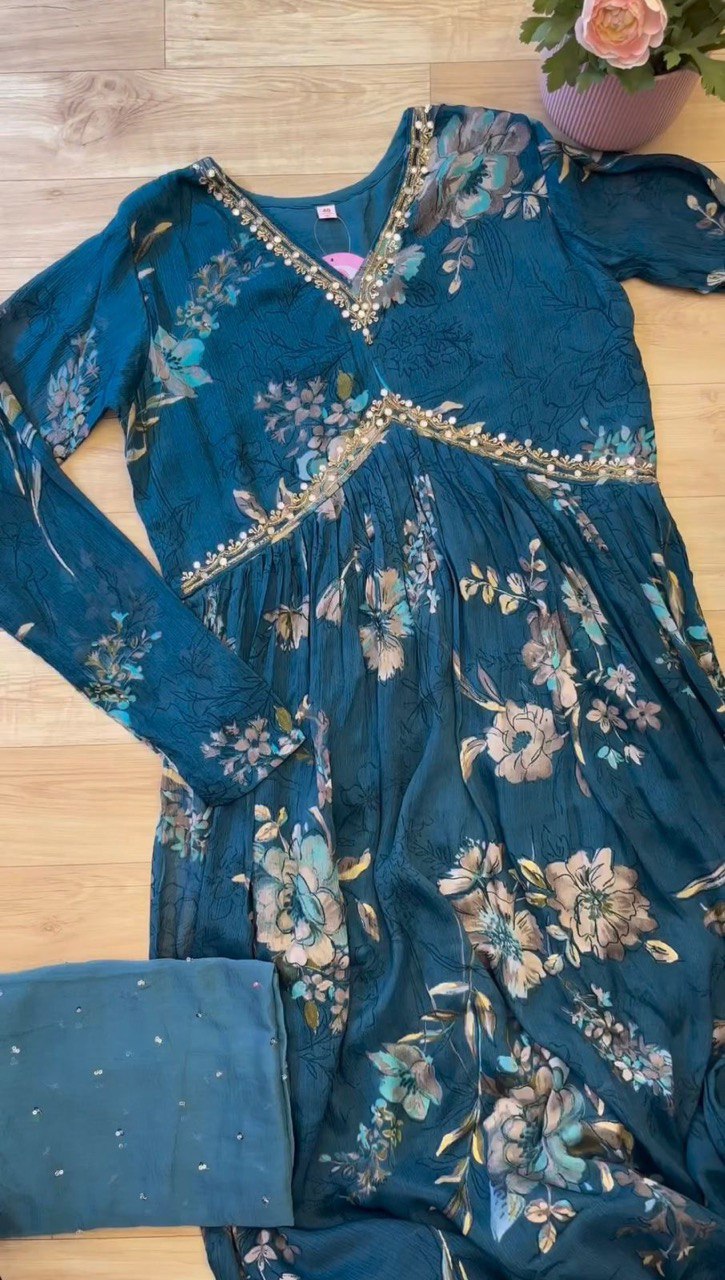 # *GOWN FABRICS* : CHINON # HEIGHT: 54” inch # *BOTTOM*: MICRO # *DUPATTA* : GEORGETTE SEQUENCE WITH BORDER SAMOSA LACE WORK 2.2meter |