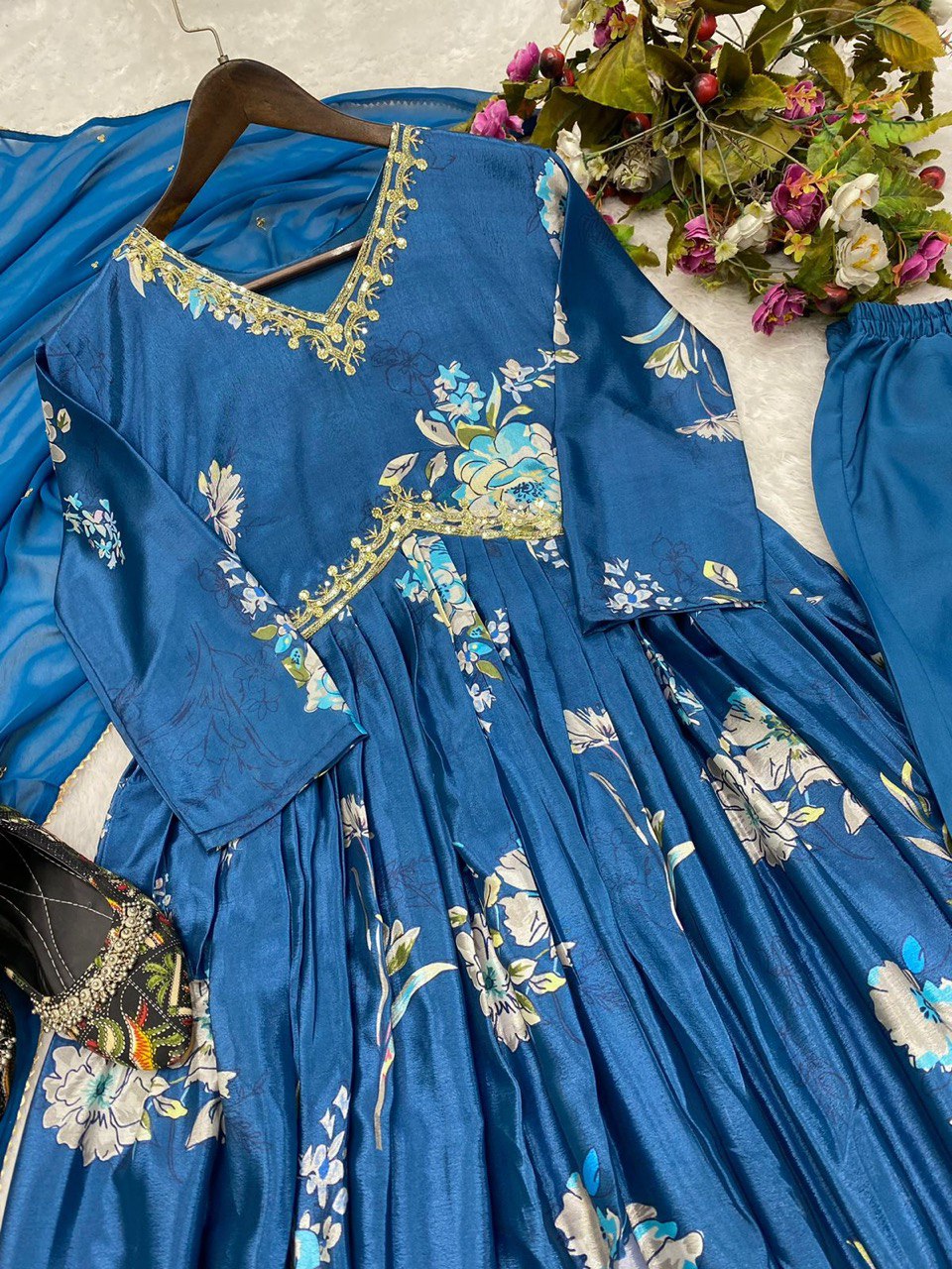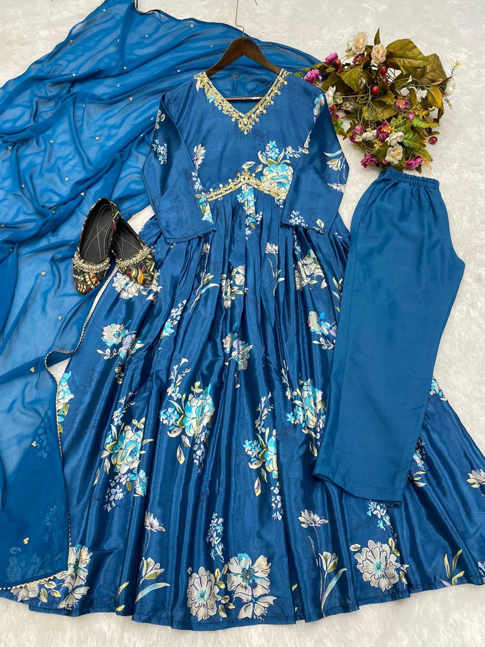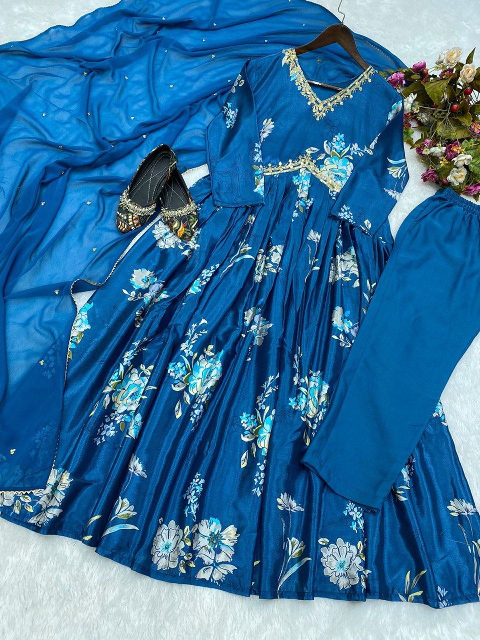 # *GOWN FABRICS* : CHINON # HEIGHT: 54” inch # *BOTTOM*: MICRO # *DUPATTA* : GEORGETTE SEQUENCE WITH BORDER SAMOSA LACE WORK 2.2meter |