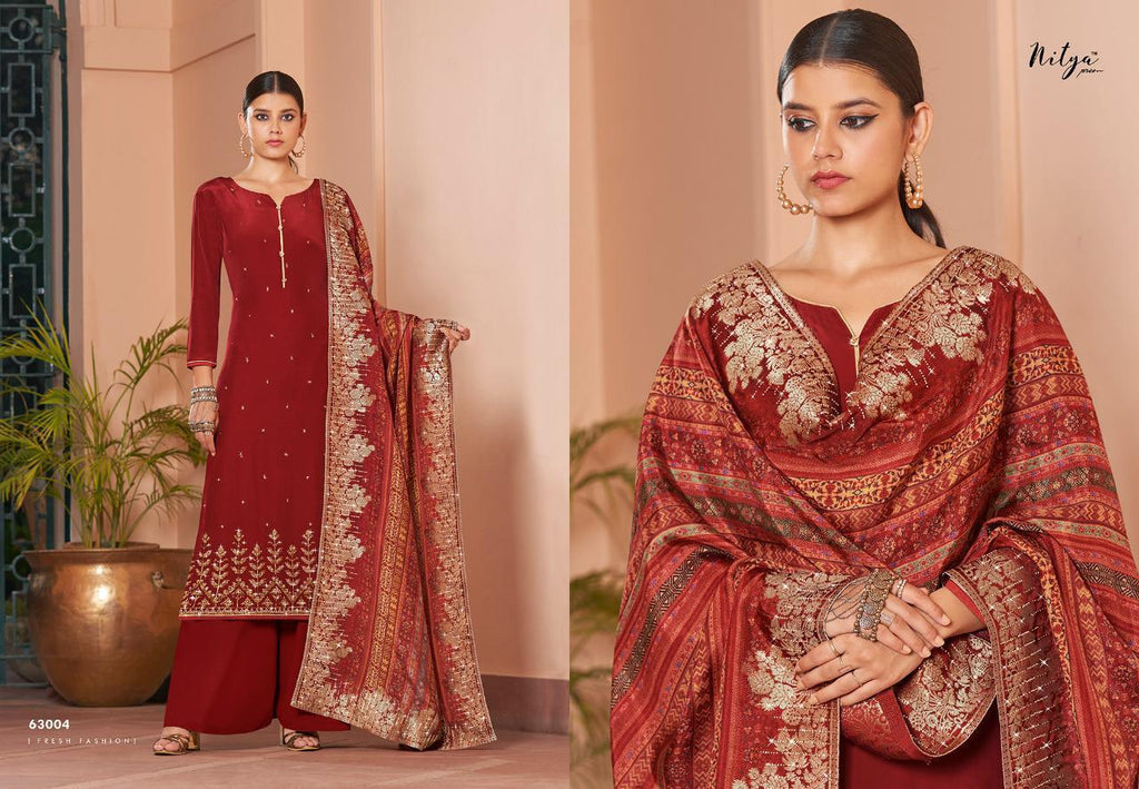 Top: Natural Crape With Swarovski Work Bottom: Natural Crape Dupatta: Dola Jacquard Digital Print With Four Side Swarovski |