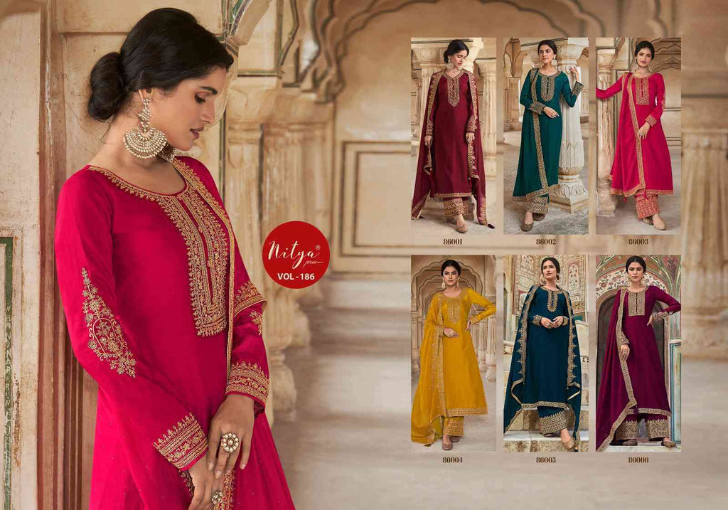 Lt Nitya Vol 186 Dola Silk Heavy Embroidery Salwar Suits