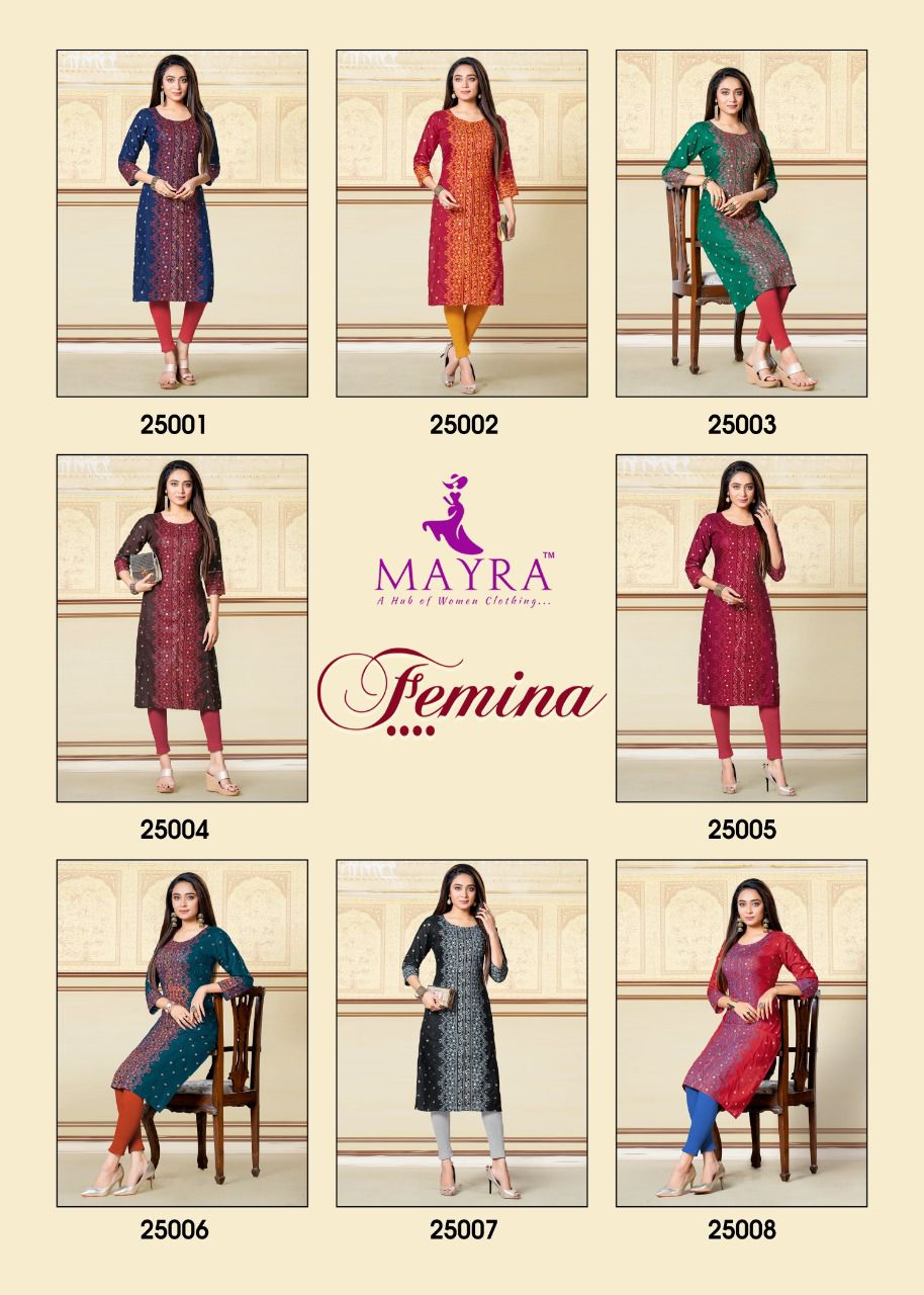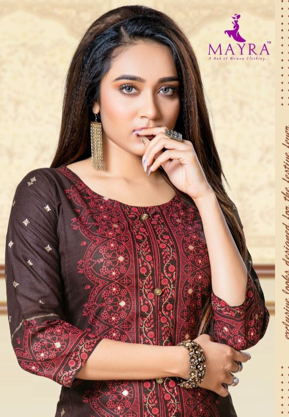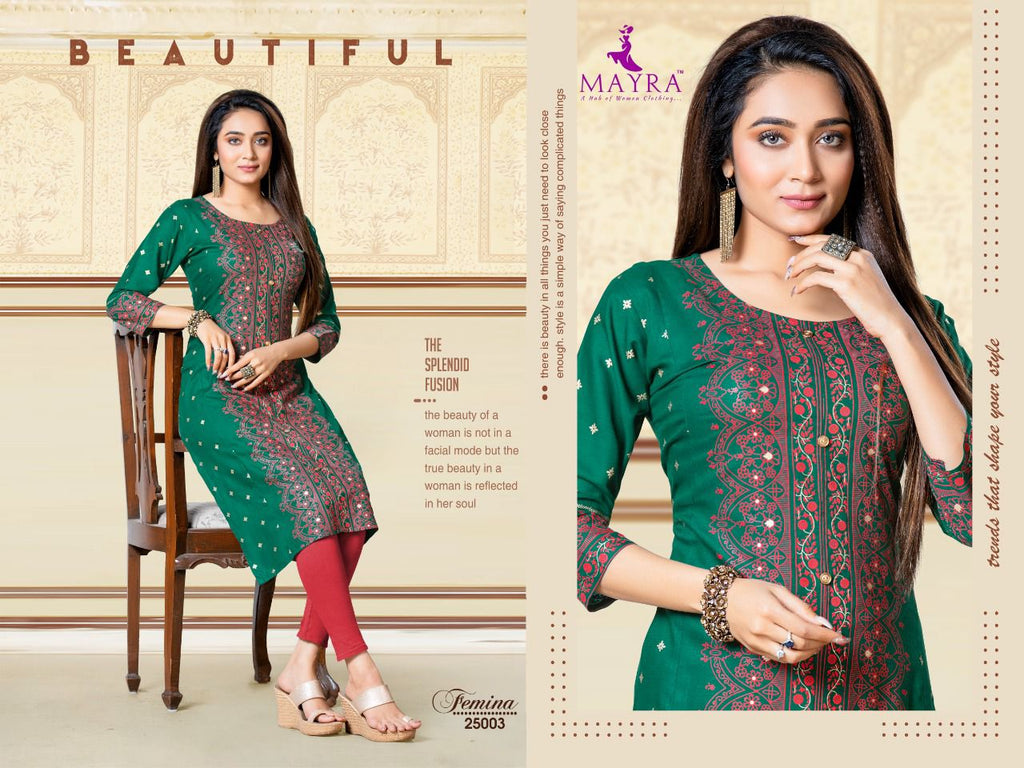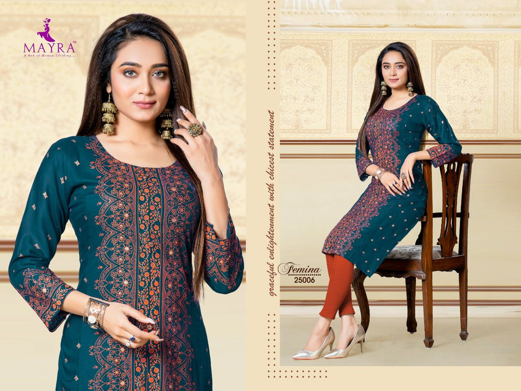 Mayra Femina Rayon Slub Party Wear Kurtis With Screen Foil Print