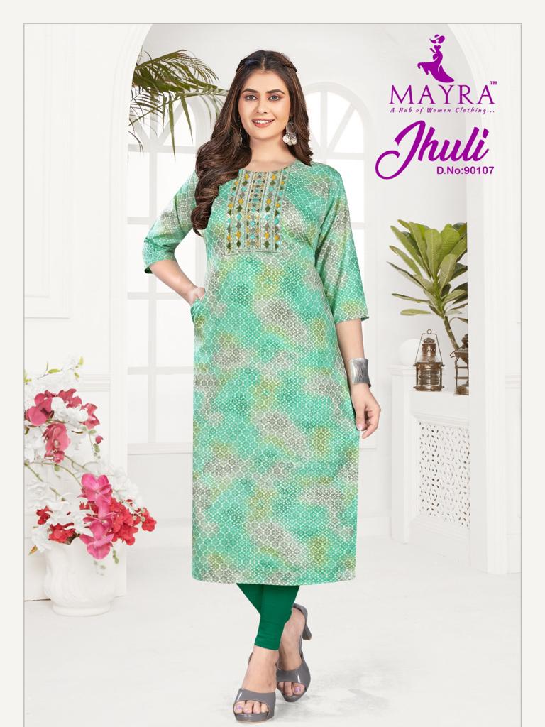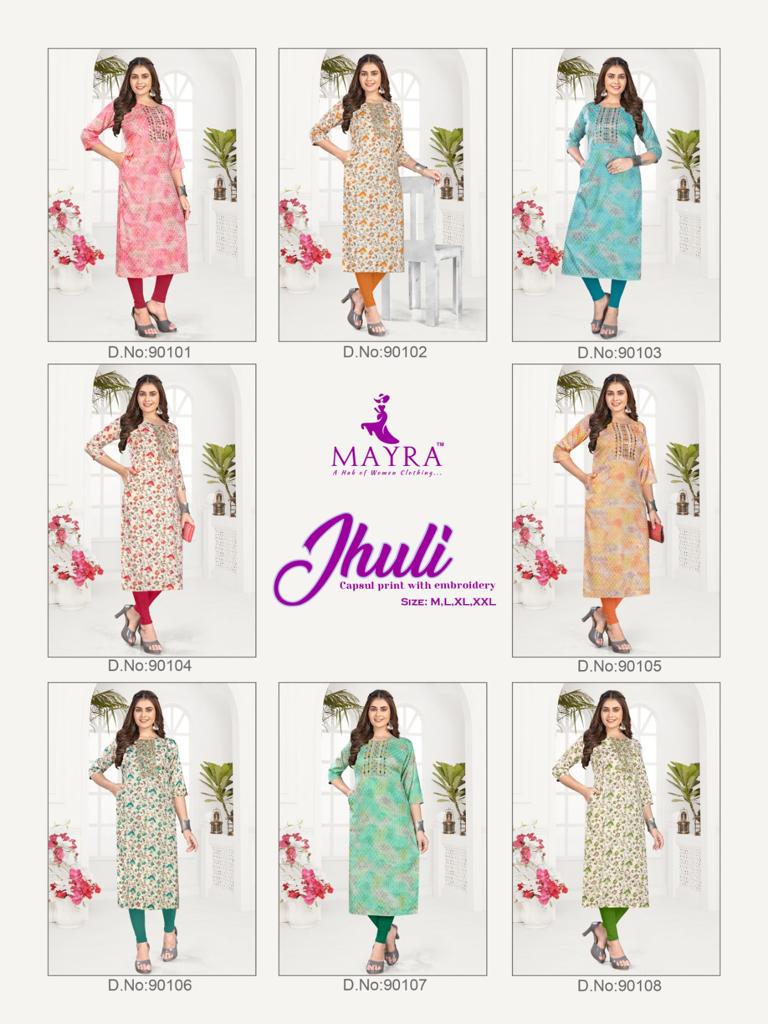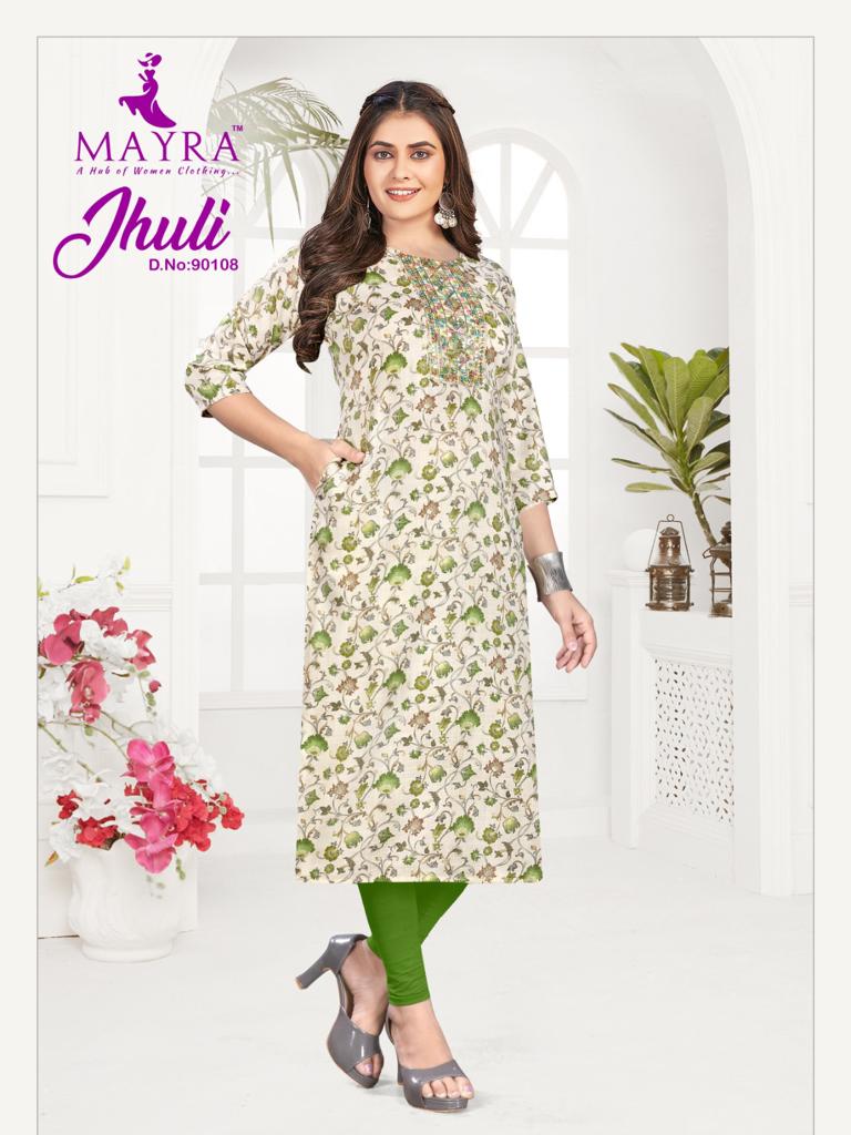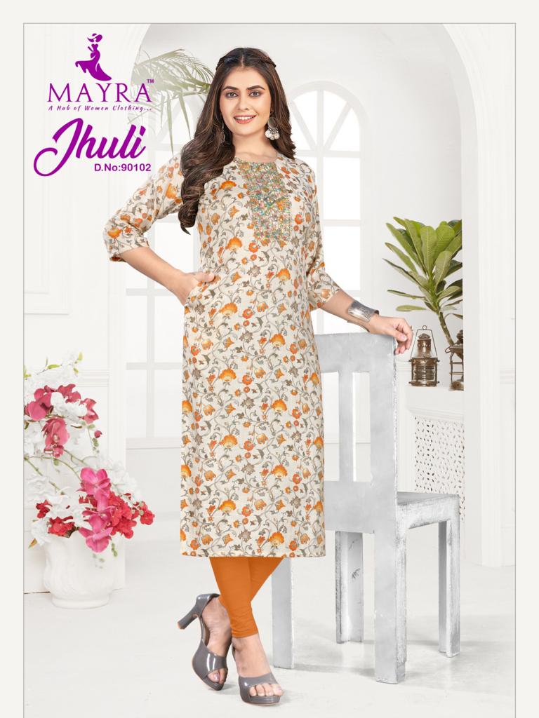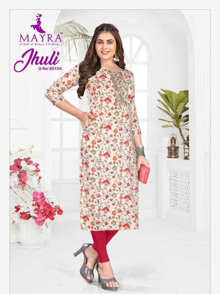 Mayra Jhuli Capsul Print With Fancy Designer Side Pocket Pattern Kurtis