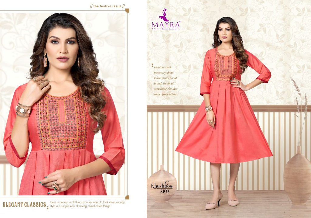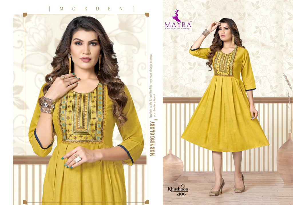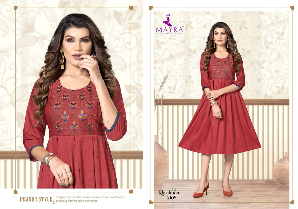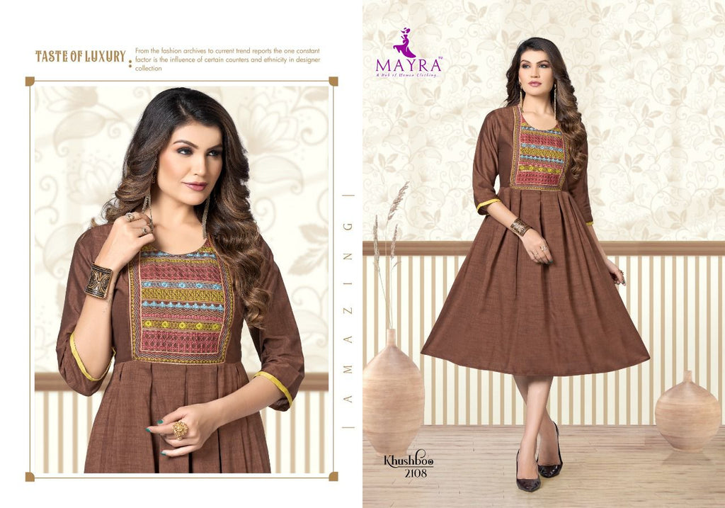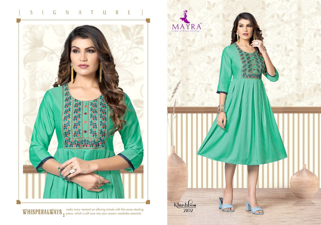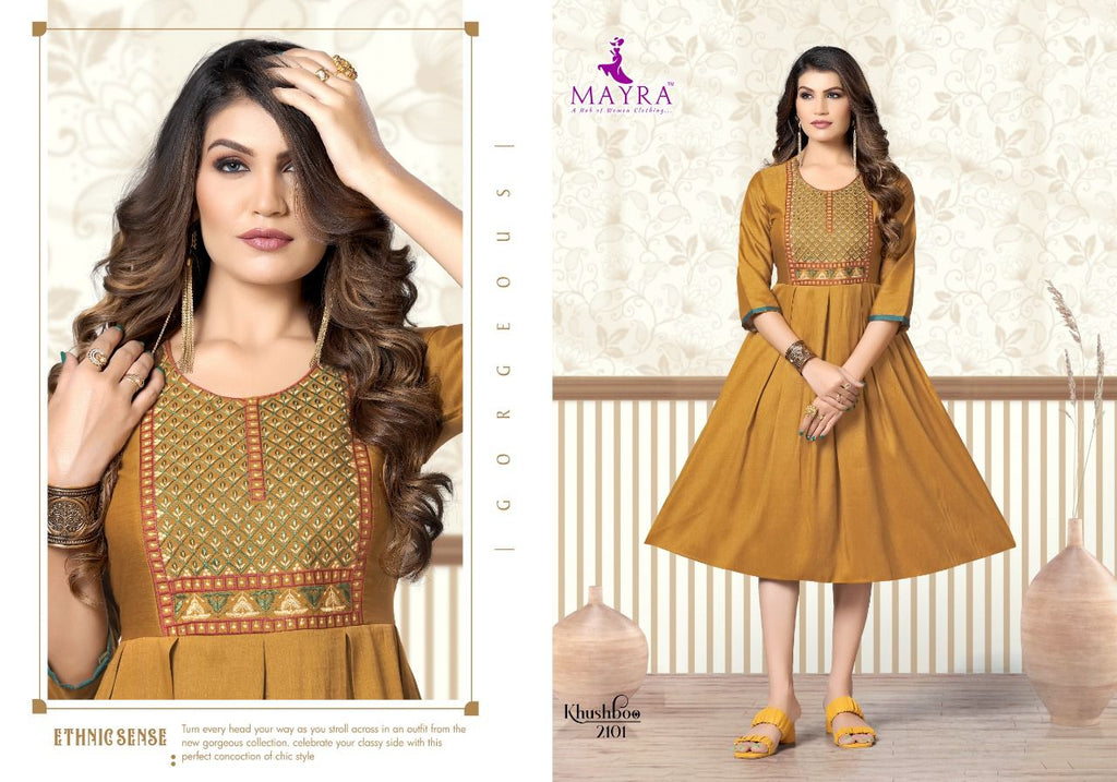 Mayra Khushboo Rayon With Heavy Embroidery Work Stylish Designer Party Wear Fancy Kurti