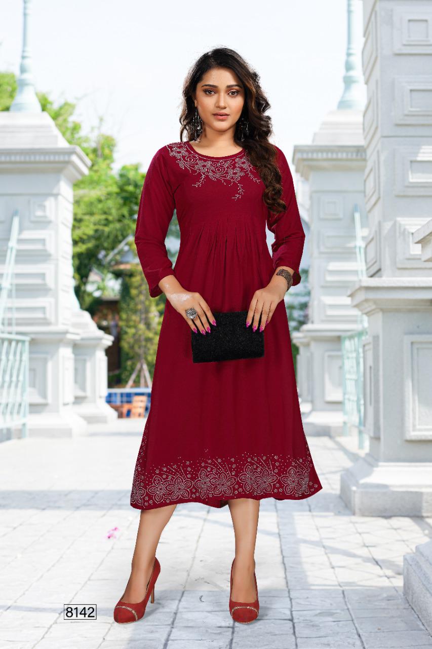 Fabric – Rayon Pattern – frock style Concept – stone work Size – M L XL XXL |