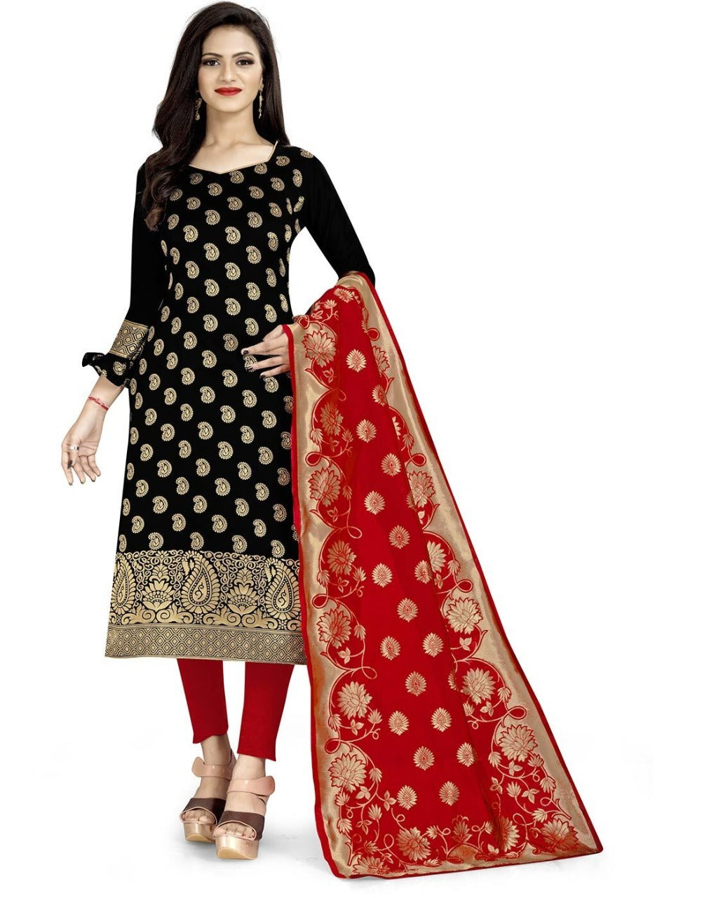 FABRIC: Top : Banarasi Silk (2 Mtr) 50 Panna Bottom : Heavy Silk (2 Mtr) 56 Panna Dupatta : Jacquard Weaving (2.30 Mtr) 24 Panna |