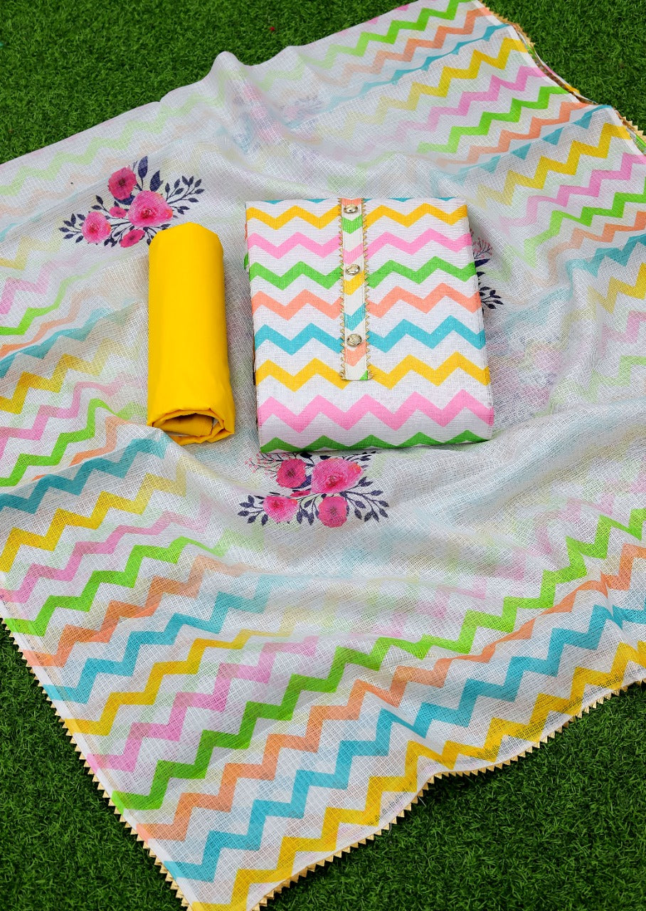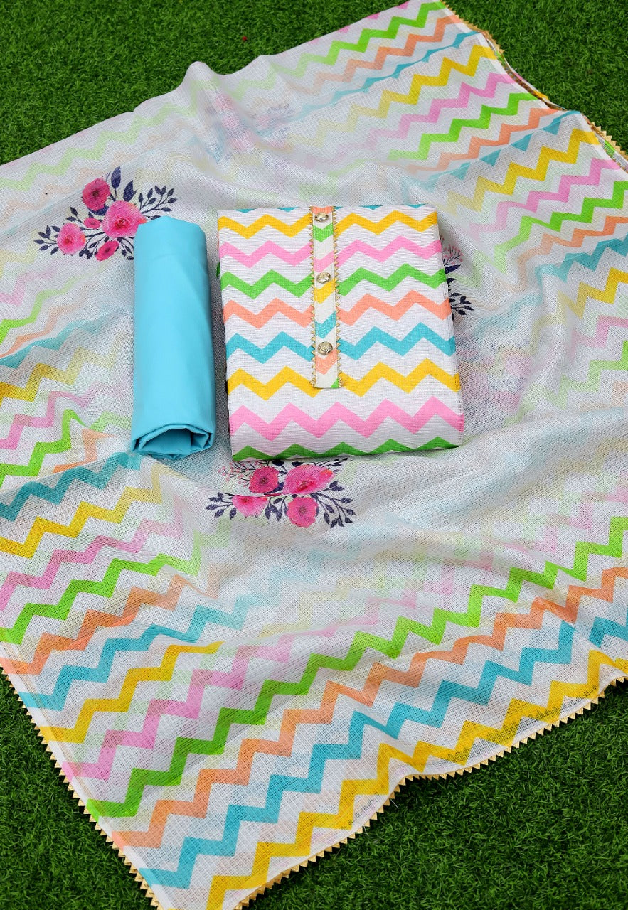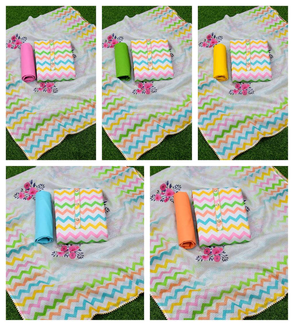 Fabric Details : Top :- Cota Cheks Digital Print With Tai And Buttons Bottom:- Santoon Inner:- Santoon Dupatta:- Cota Cheks Digital Print With Samosa Border |