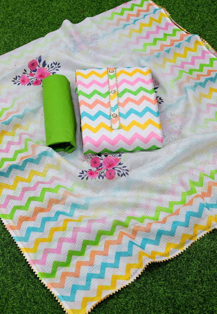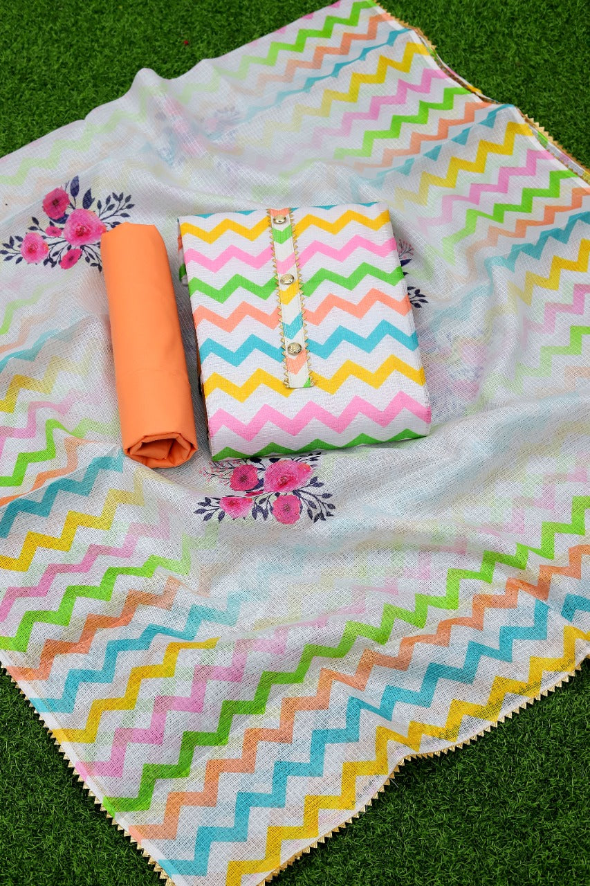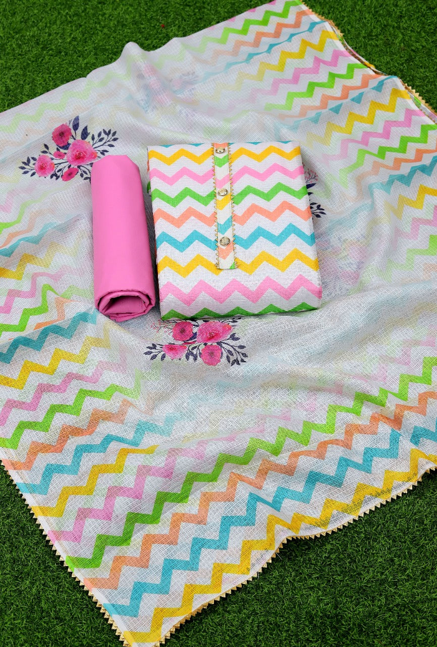 Fabric Details : Top :- Cota Cheks Digital Print With Tai And Buttons Bottom:- Santoon Inner:- Santoon Dupatta:- Cota Cheks Digital Print With Samosa Border |