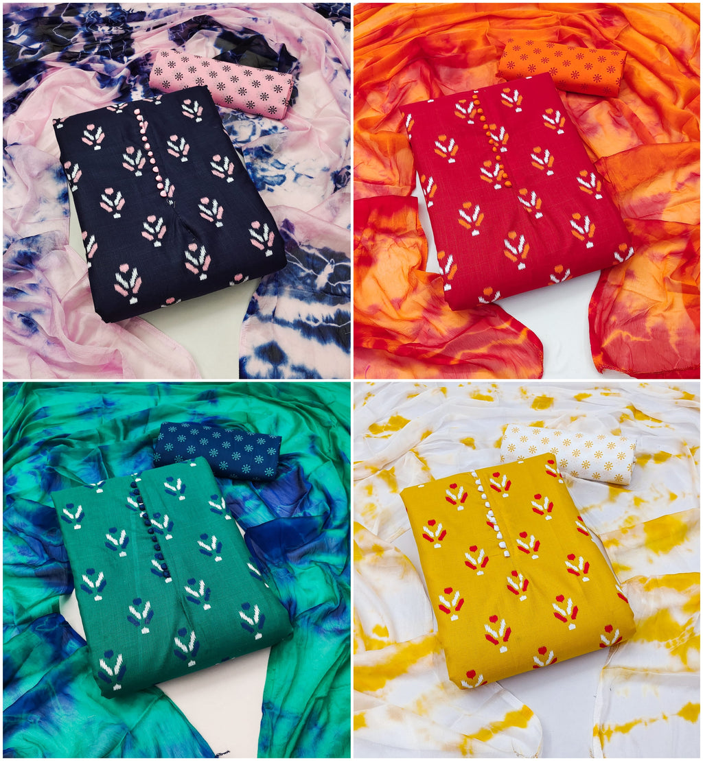 Top – SLUBB print Bottom – cotton Dupta – chinon with saburi |