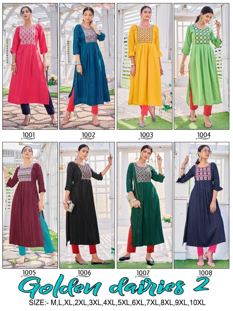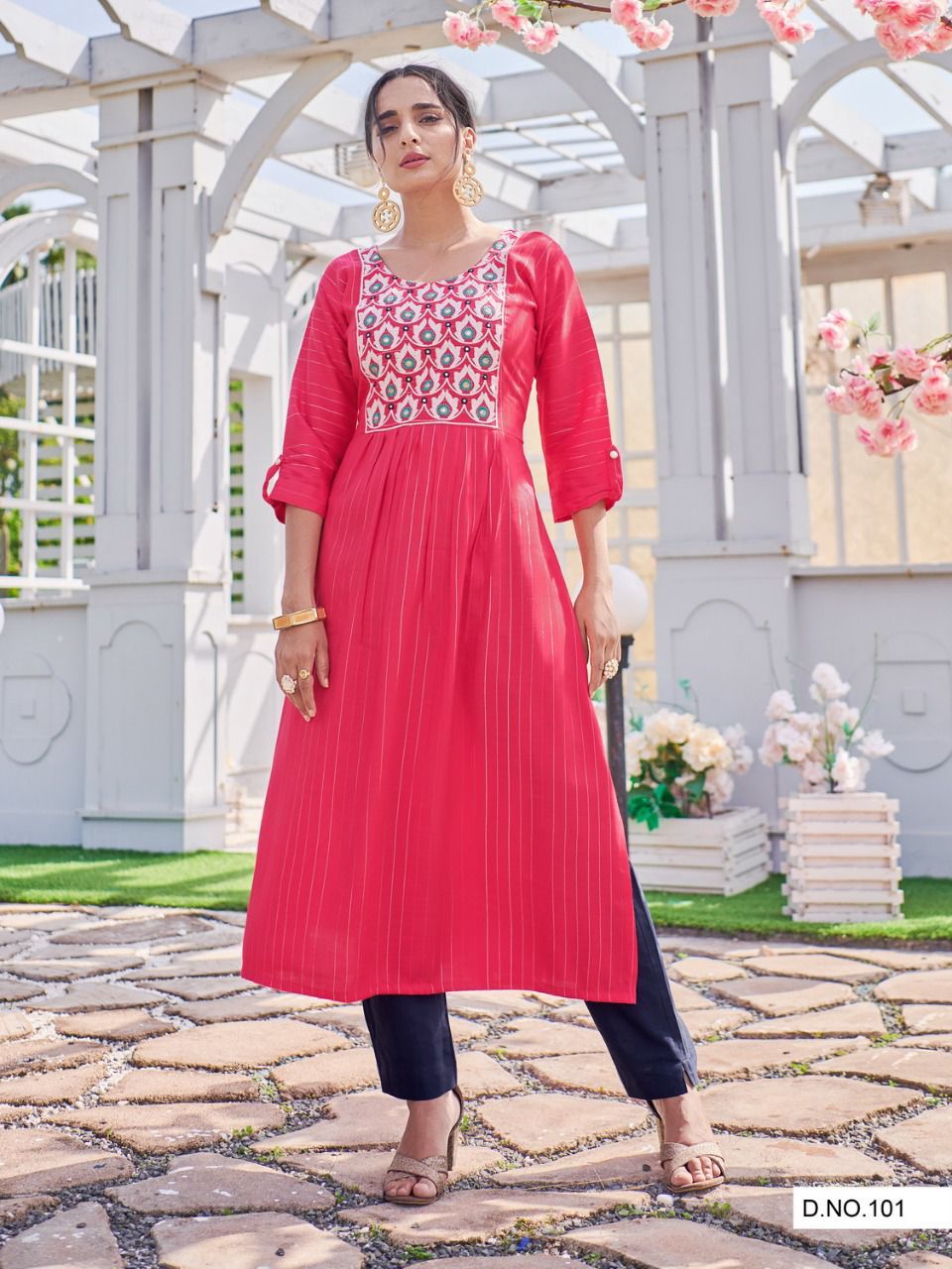 Details : Cloth :- Rayon Slub 14Kg Lurex Lining Kurti Embroidery Style :- Heavy Embroidery With Mirror Work ( Only Top ) Pattern :- Straight Cut With Frill And Back Dori Pattern Size :- 7XL,8XL,9XL,10XL |