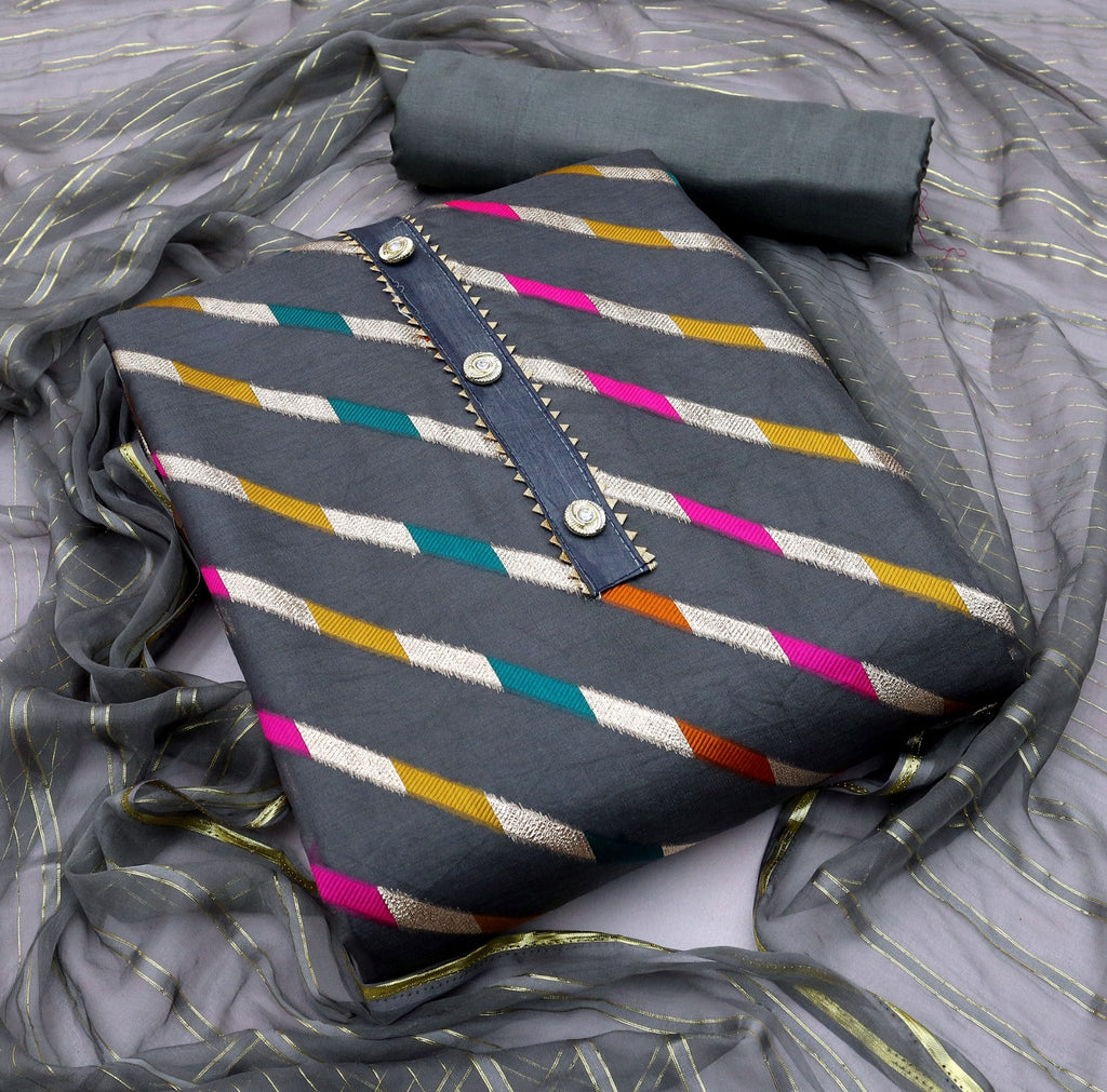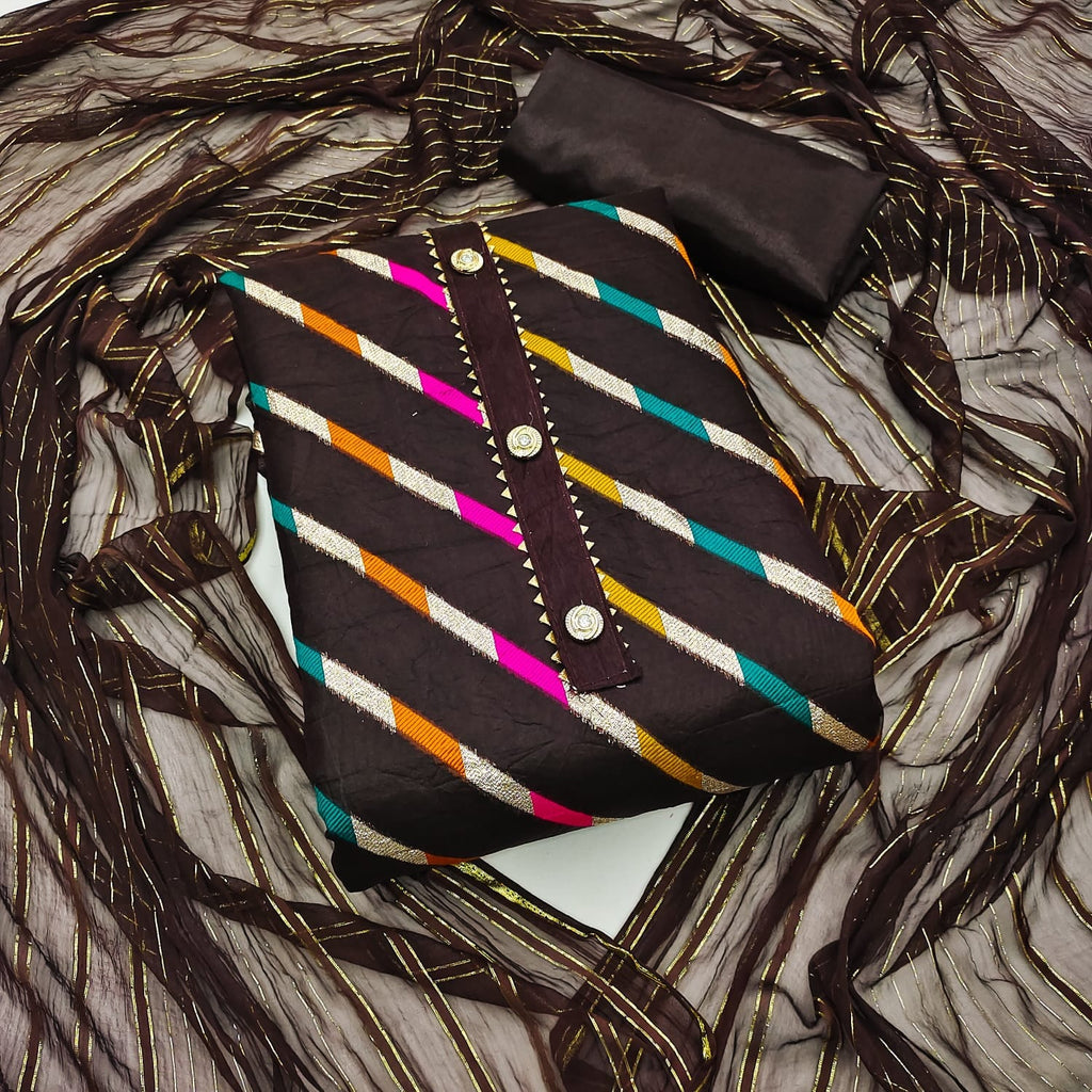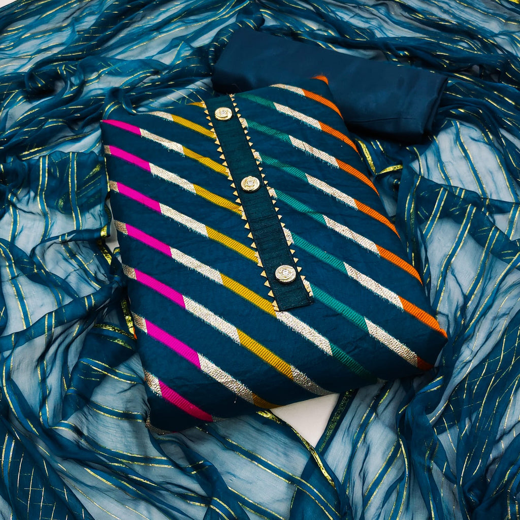 Other Details | Top Fabrics:- Organza Lahriya Jecurd Bottom Fabrics Shantoon Inner:- Shantoon *1.60 Cut Dupatta:*nazneen Jari Patta Work Type: Organza Lahriya Jecurd |