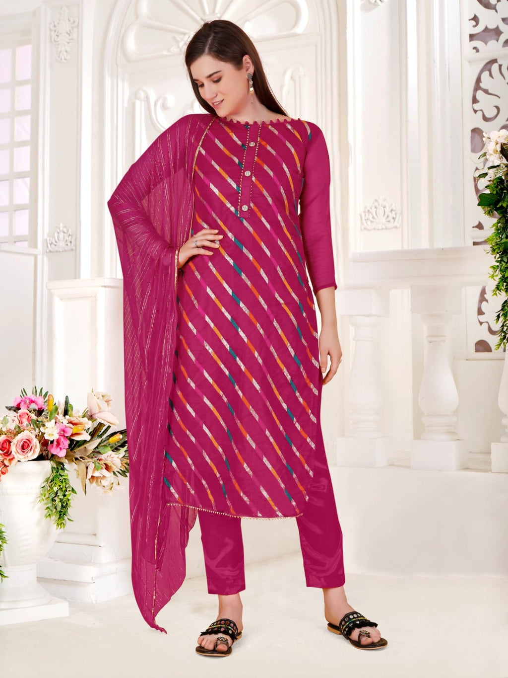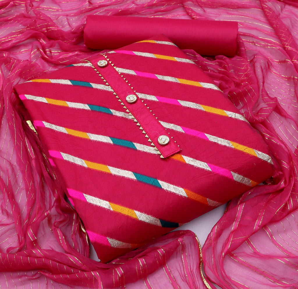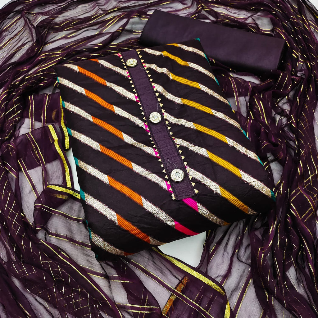 Other Details | Top Fabrics:- Organza Lahriya Jecurd Bottom Fabrics Shantoon Inner:- Shantoon *1.60 Cut Dupatta:*nazneen Jari Patta Work Type: Organza Lahriya Jecurd |