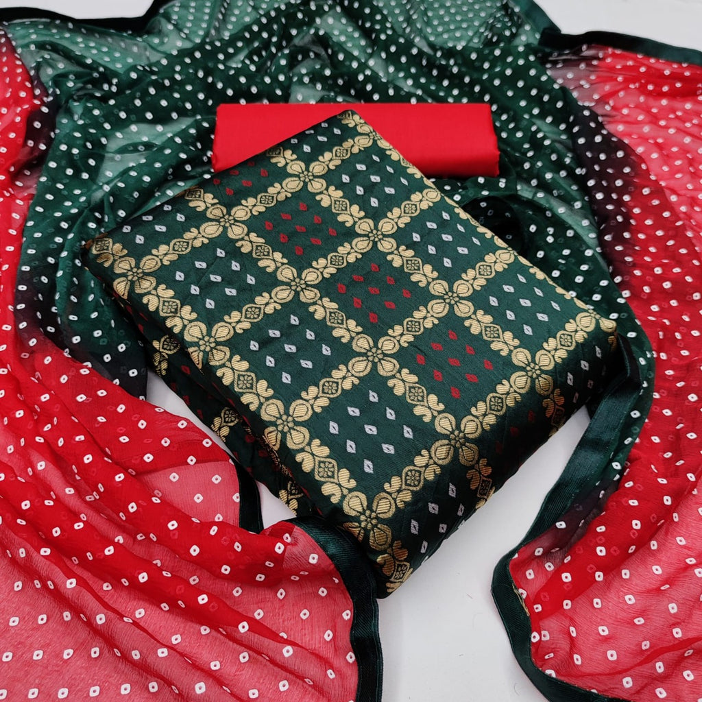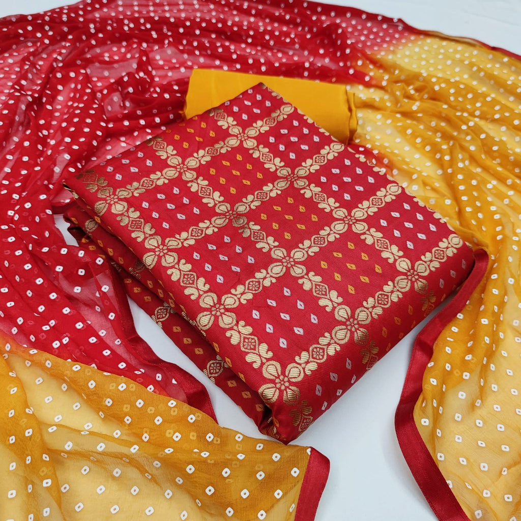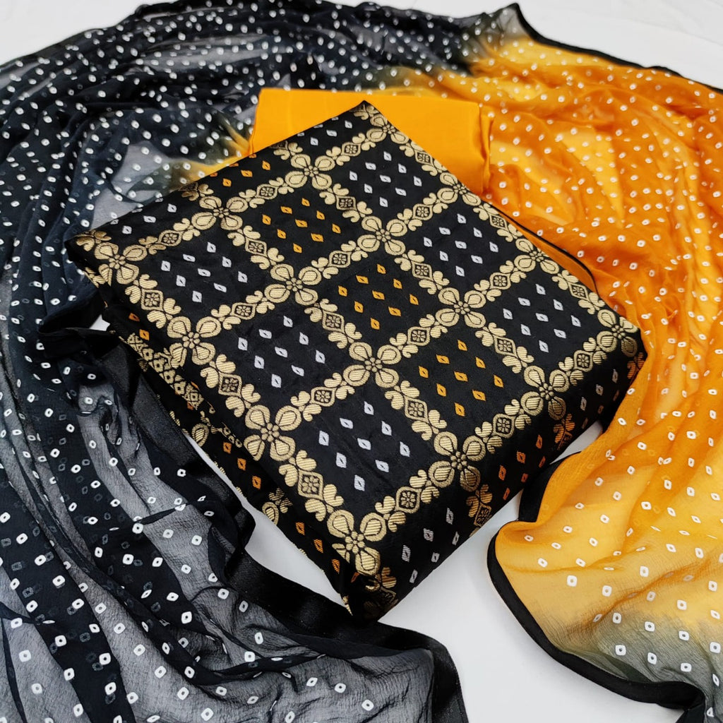 Fabric: Top : Jacquard (2.10 Mtr) Bottom : Santoon (2.10 Mtr) Dupatta : Nazmeen Table Print (2.10 Mtr) |