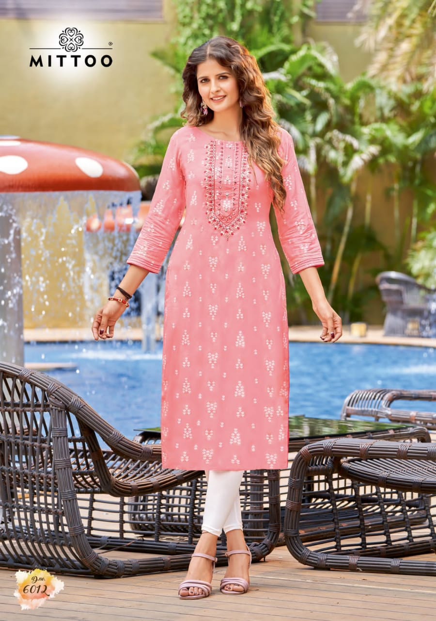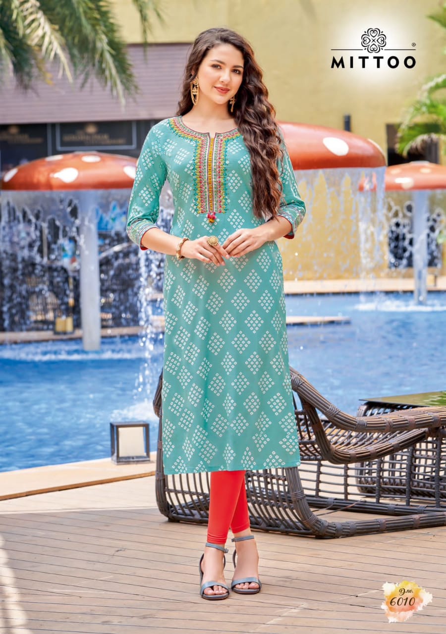 Mittoo Bandhan Vol 2 Rayon Print With Fancy Hand Work Stylish Designer Casual Wear Fancy Kurti