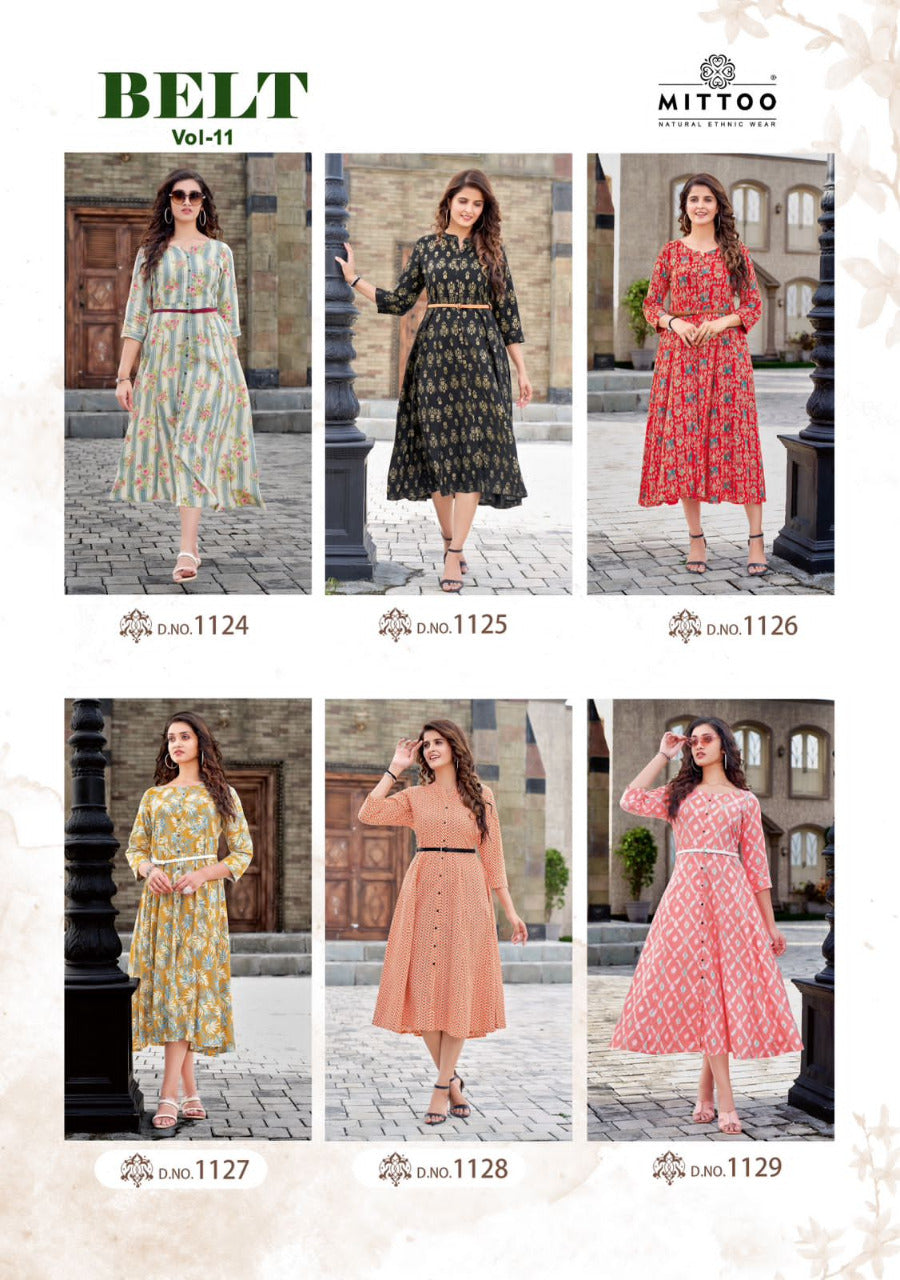 Mittoo Belt Vol 11 Rayon With Embroidery Work Stylish Designer Fancy Shorts Kurti