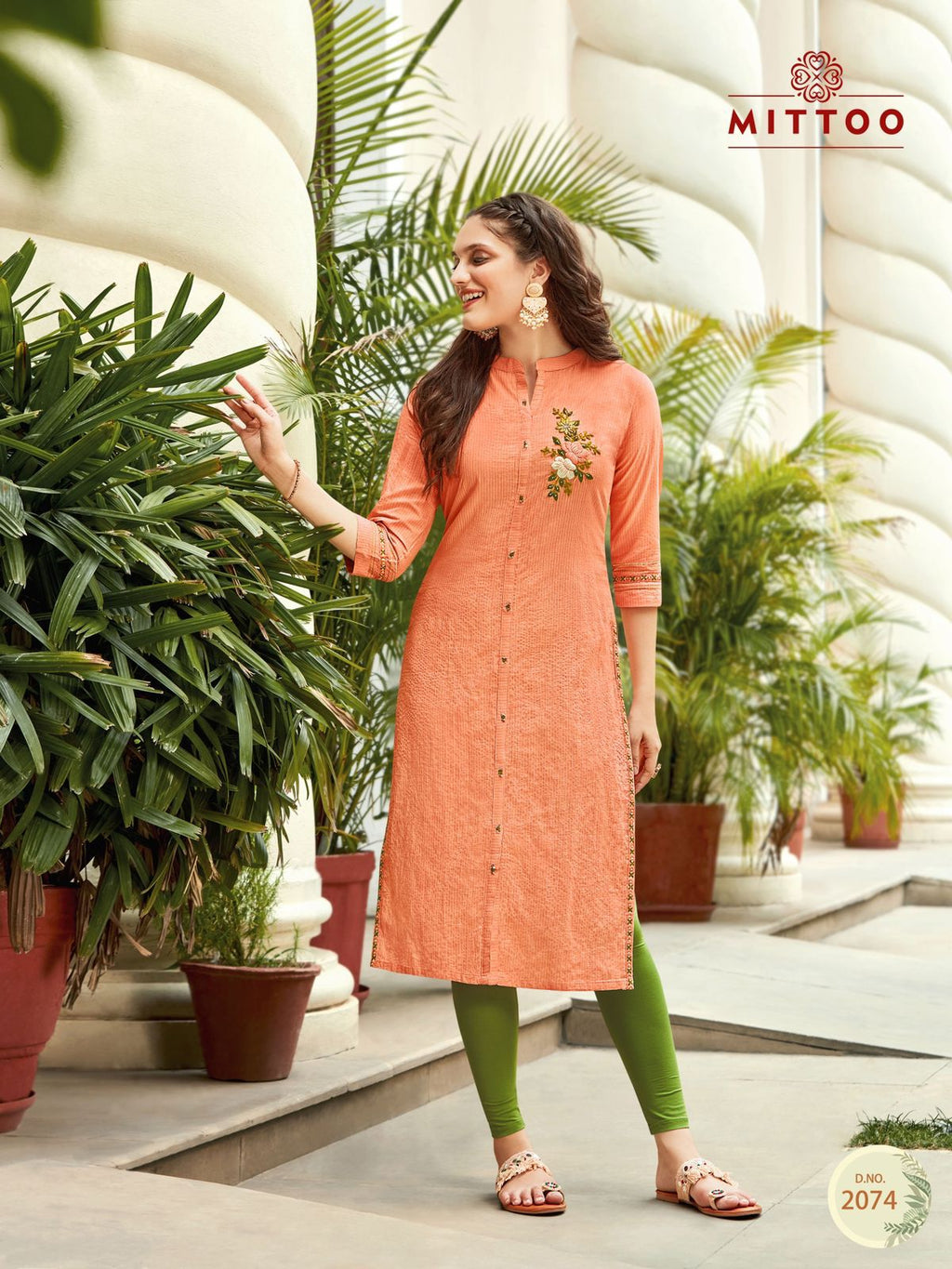 Mittoo Priyal Dno 2073 To 2078 Pure Cotton Daily Wear Stylish Designer Casual Kurti