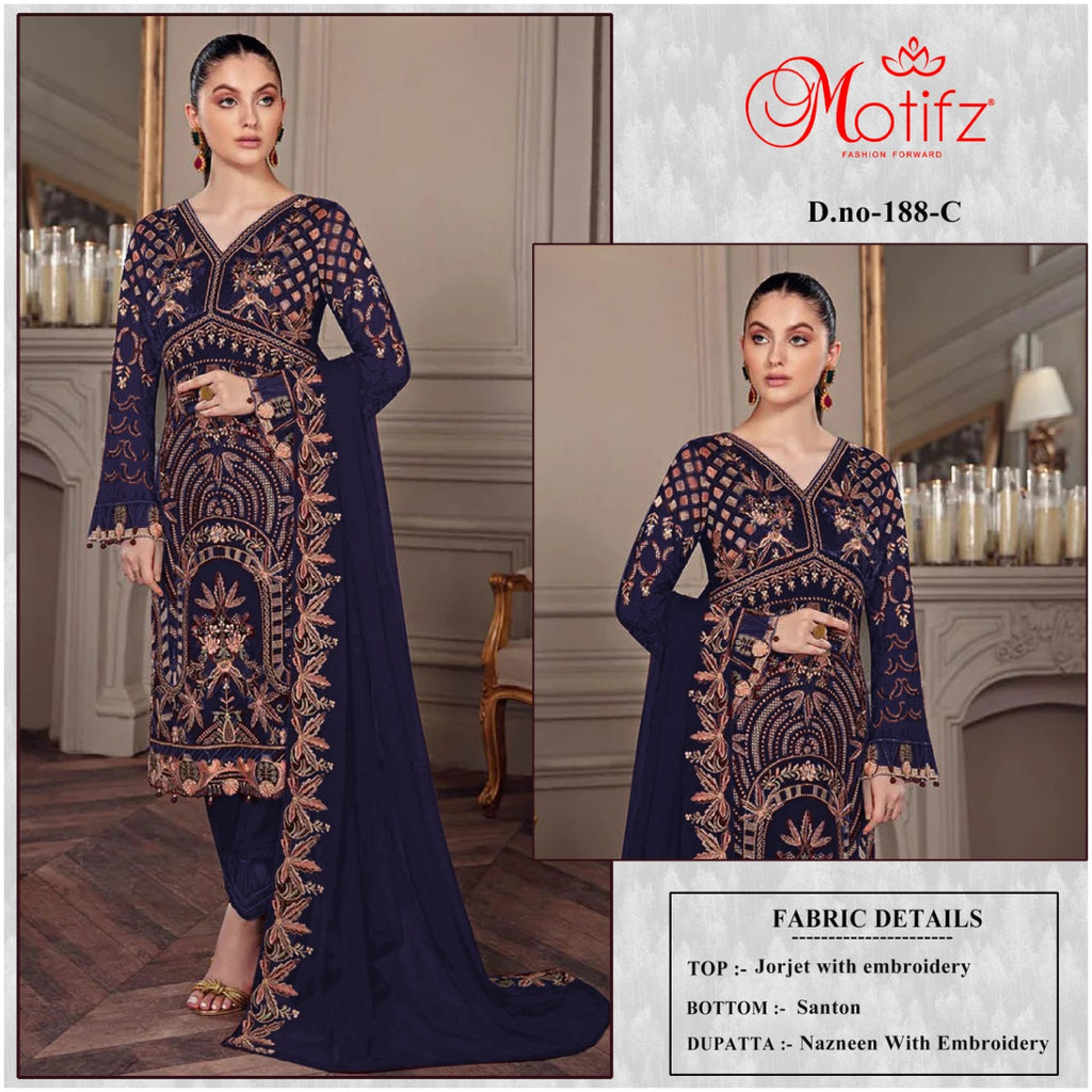 Motifz Dno 188 C Georgette With Beautiful Heavy Embroidery Work Stylish Designer Pakistani Salwar Kameez