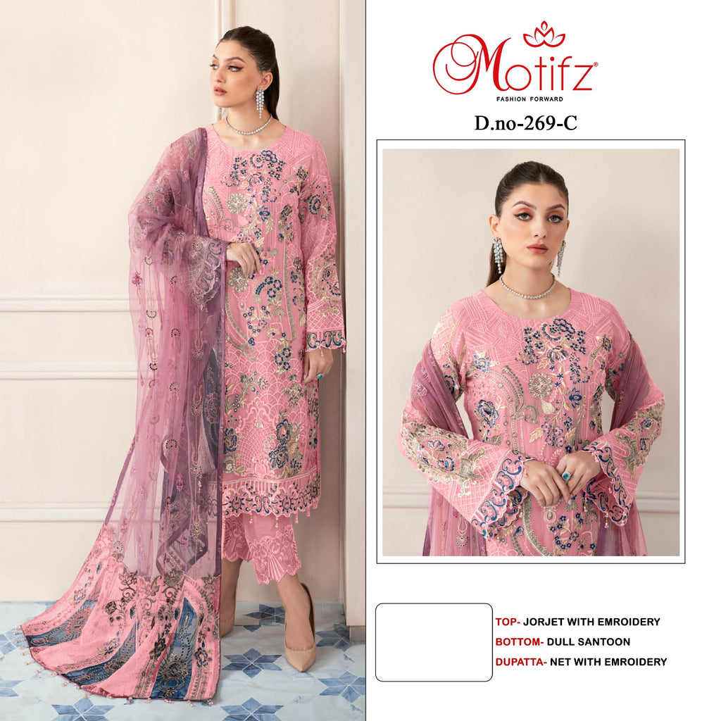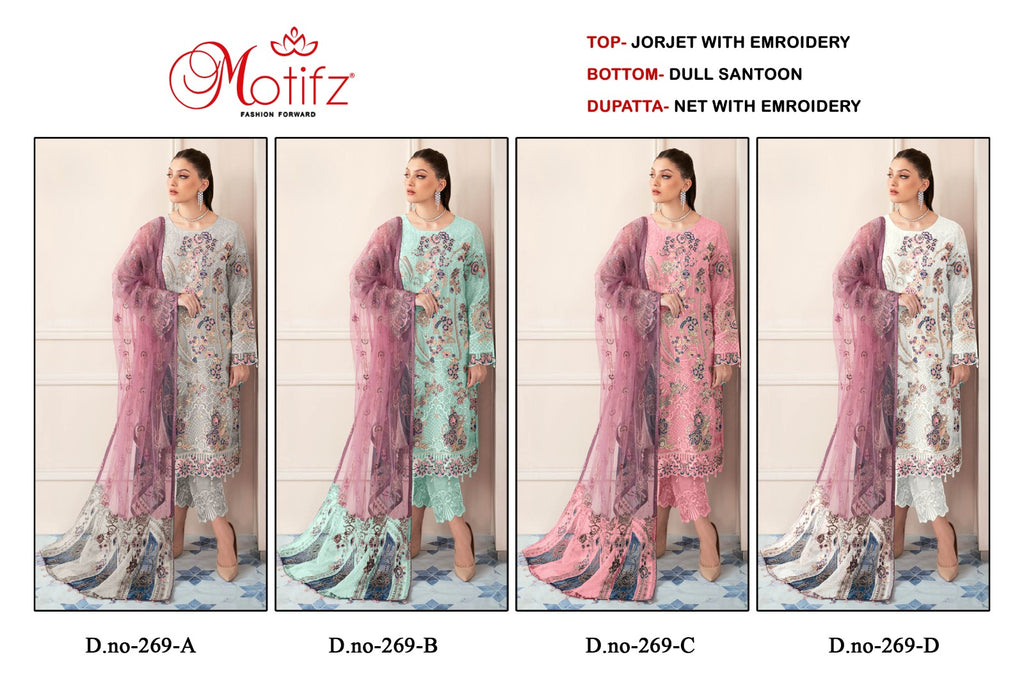 TOP: GEORGETTE WITH EMBROIDERY BOTTAM:- DULL SENTOON DUPATTA : NET WITH EMBROIDERY PALLU DUP |