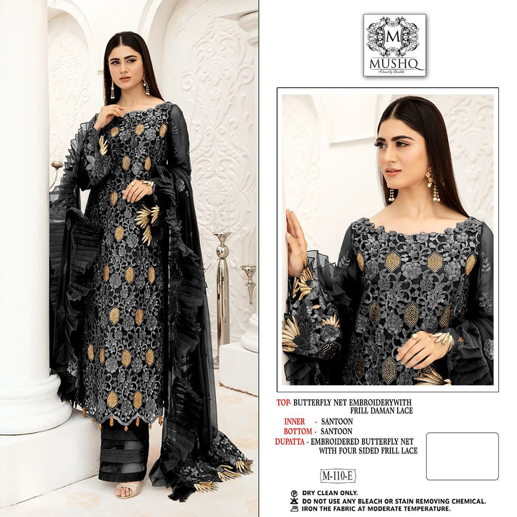 Mushq M-110 E Butterfly Net Stylish Embroidery Work Designer Wear Salwar Kameez