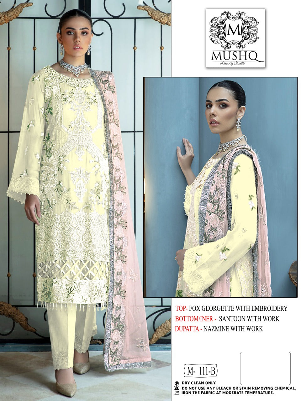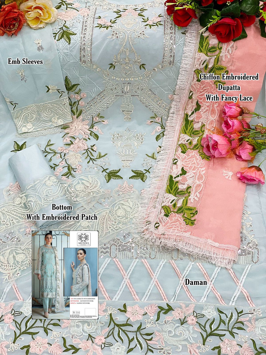 Mushq M 111 Fox Georgette Pakistani Style Embroidered Party Wear Salwar Suits
