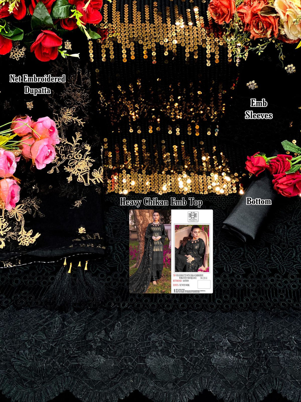 Mushq M 134 Fox Georgette With Chicken Work Designer Party Wear Salwar Kameez