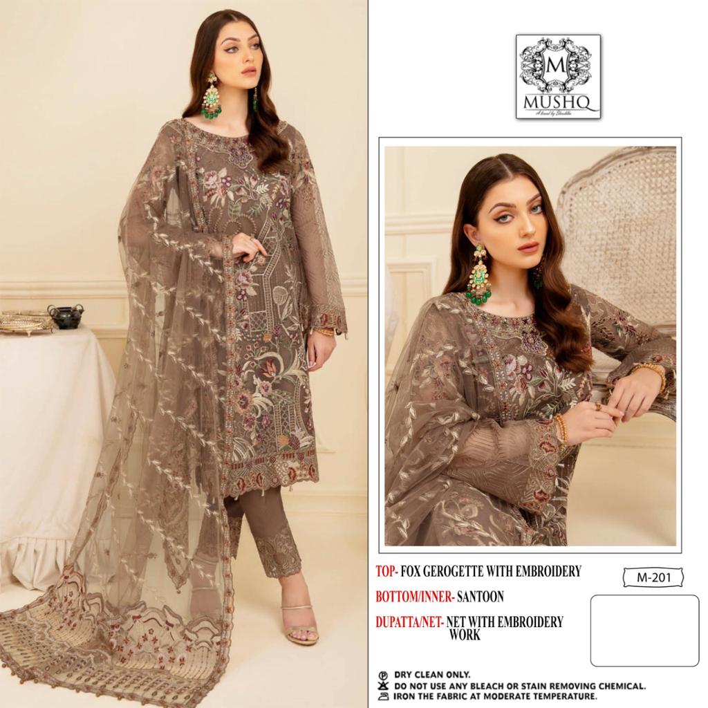 Top :- HEAVY FOX GEROGETTE EMBROIDERED with diemnd Dupatta :- BUTTERFLY NET ( HEAVY EMBROIDERY WORK) INNER:- SANTOON Bottom :- SANTOON&Work |