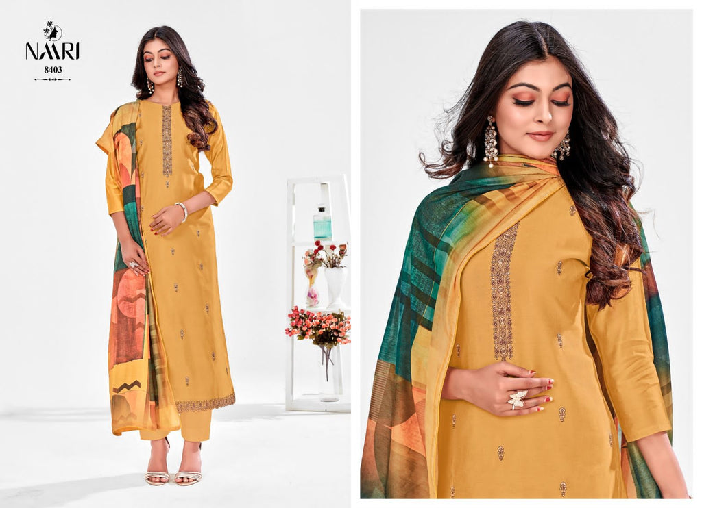 Top:-Pure silk With embro work Bottom :-Viscous dyeable Reyon Dupatta:Pure muslin silk digital print |