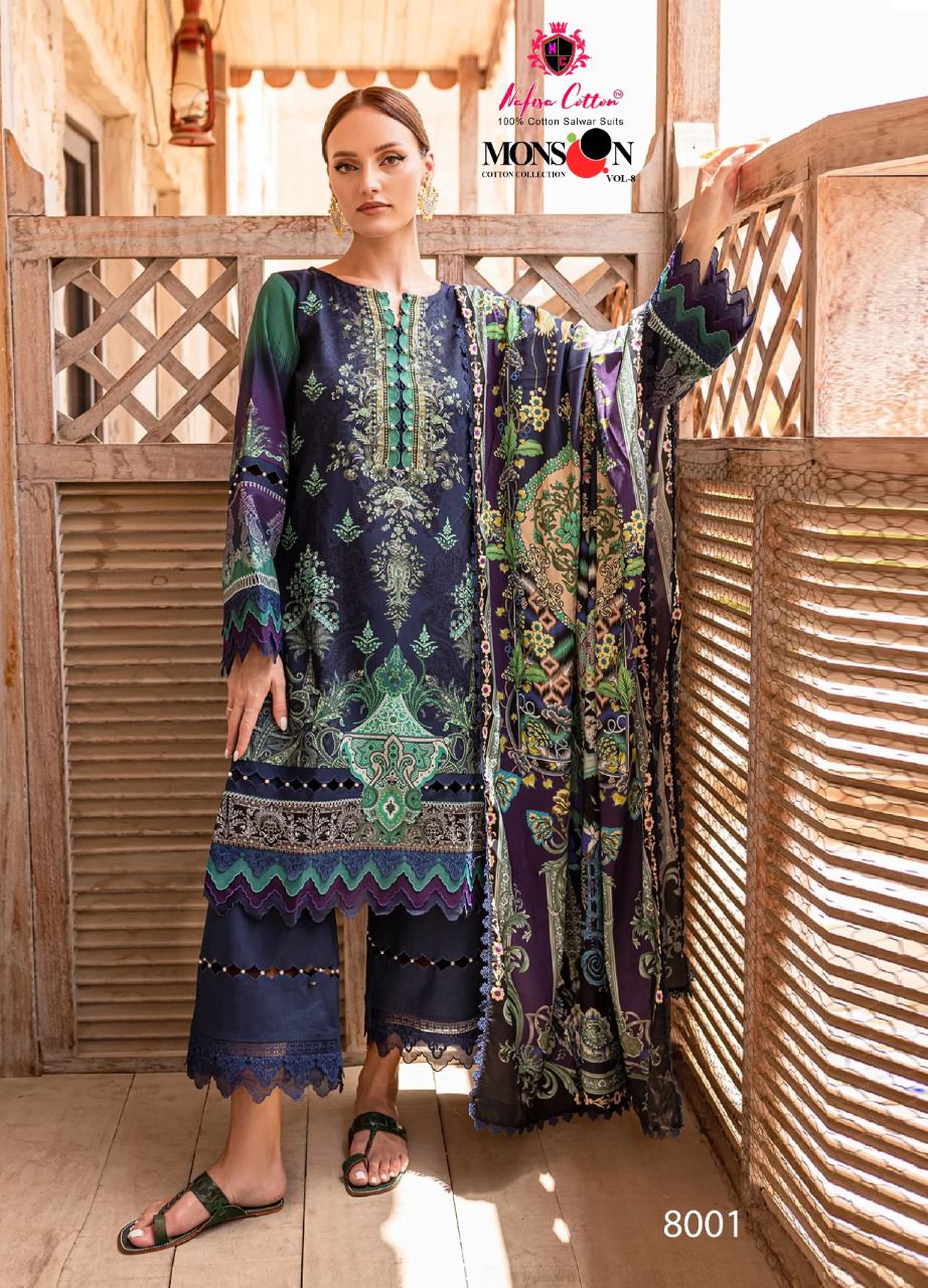 Nafisha Monsoon Collection Vol 07 Pure Cotton With Heavy Embroidery Work Stylish Designer Festive Wear Salwar Kameez