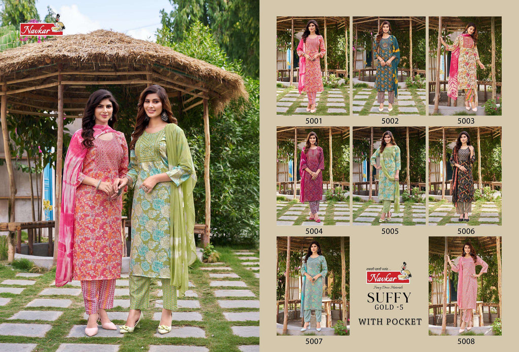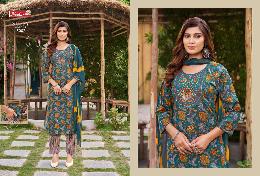 Navkar Suffy Gold Vol 5 Rayon Foil Printed Fancy Designer Combo Set Of Kurti