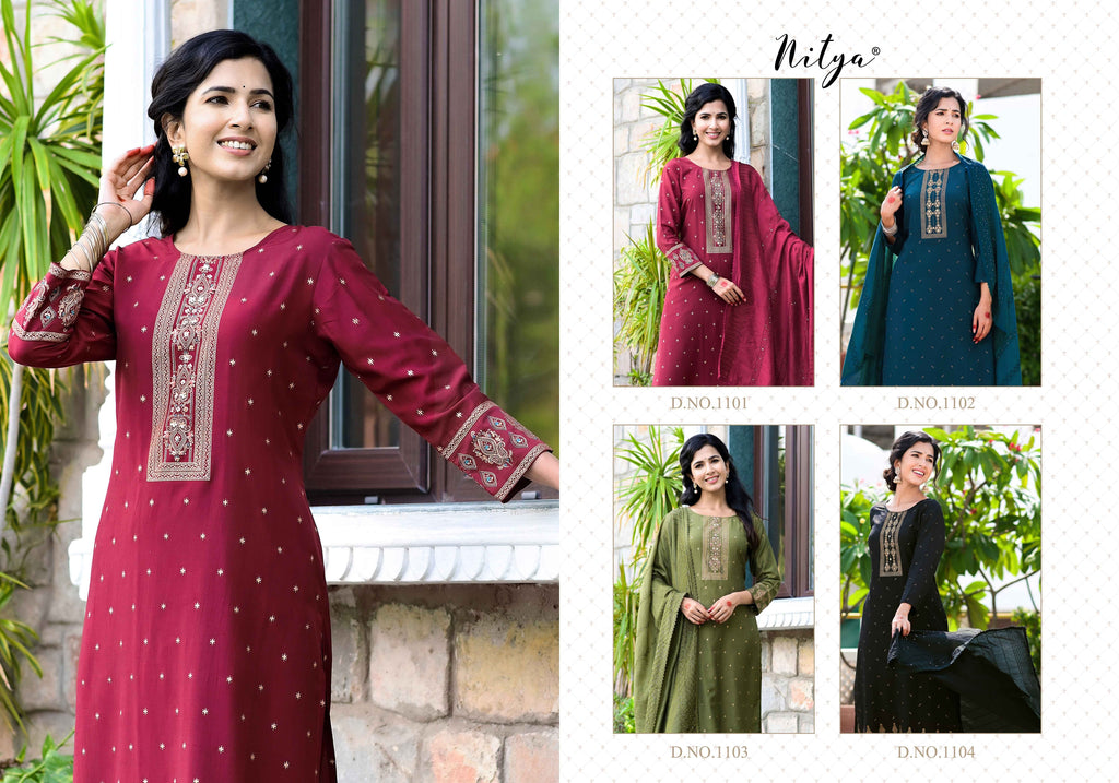 Nitya Mayah Silk Foil With Haand Work Fancy Kurti