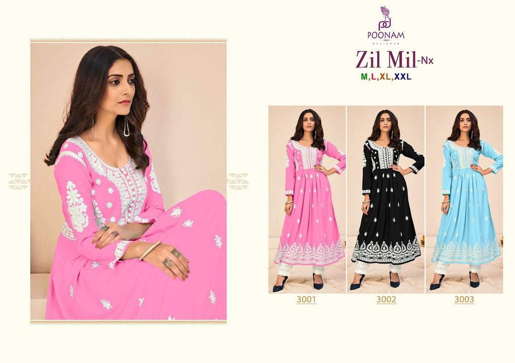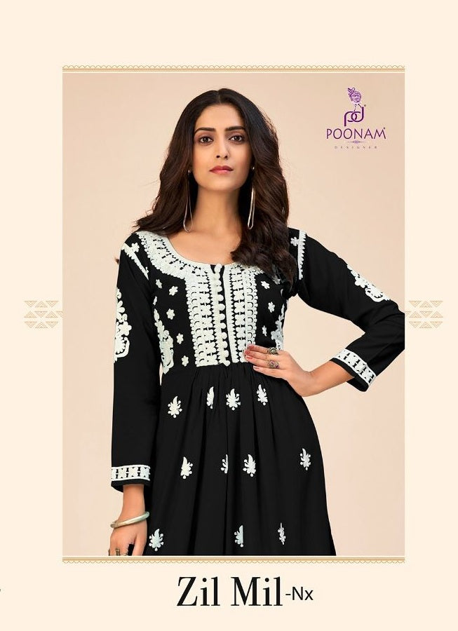 Poonam Designer Zil Mil Rayon With Front Work Kurti
