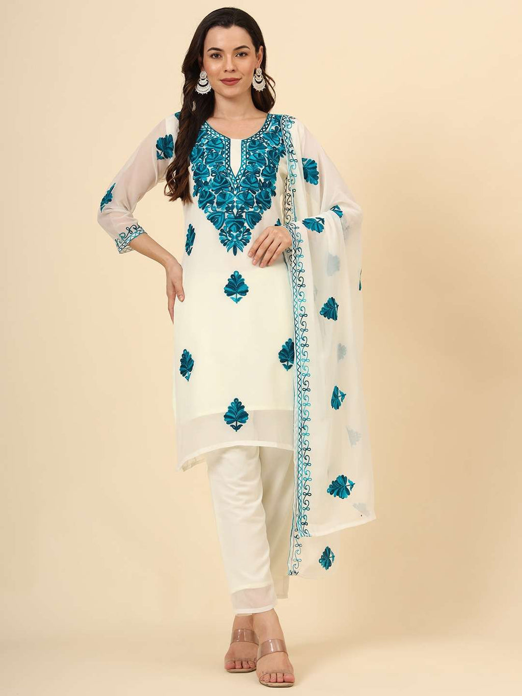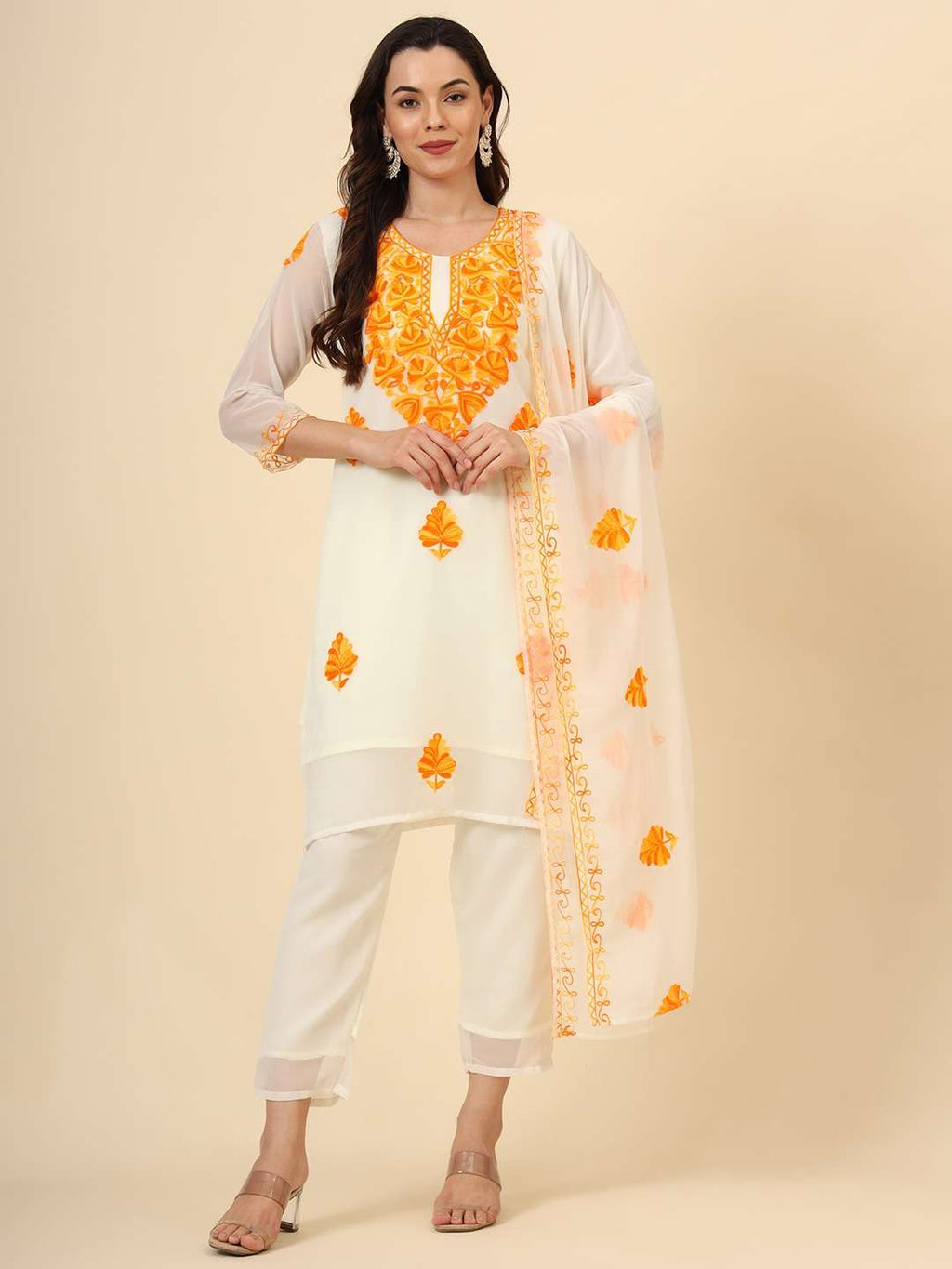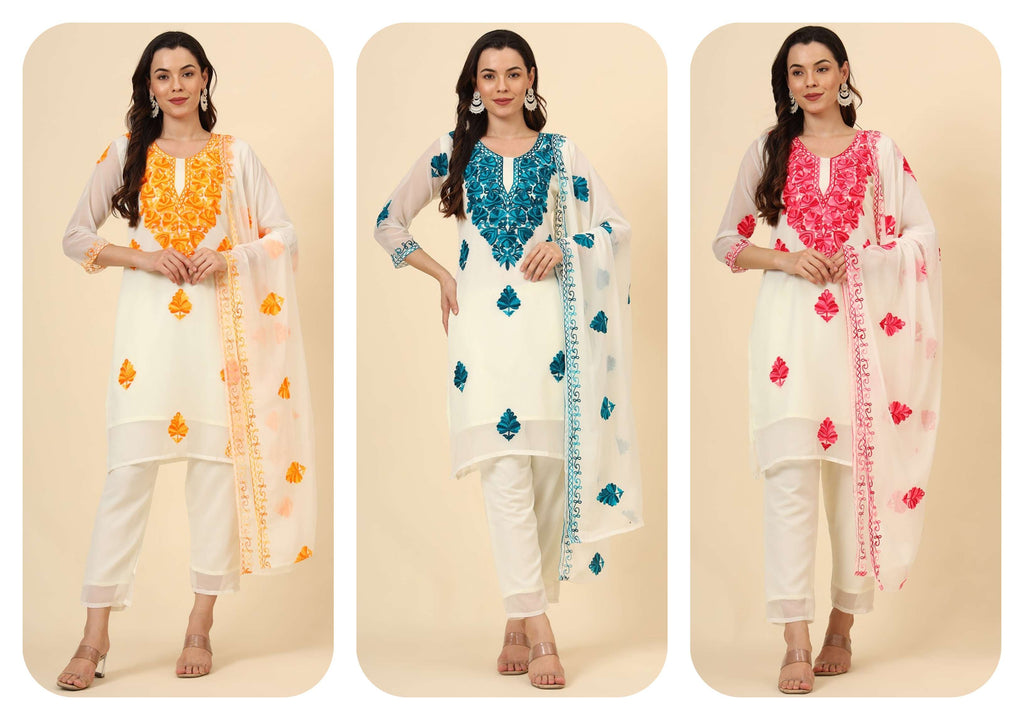 Rajlaxmi Lucknowi Touch Georgette Kurti Pant Dupatta Set